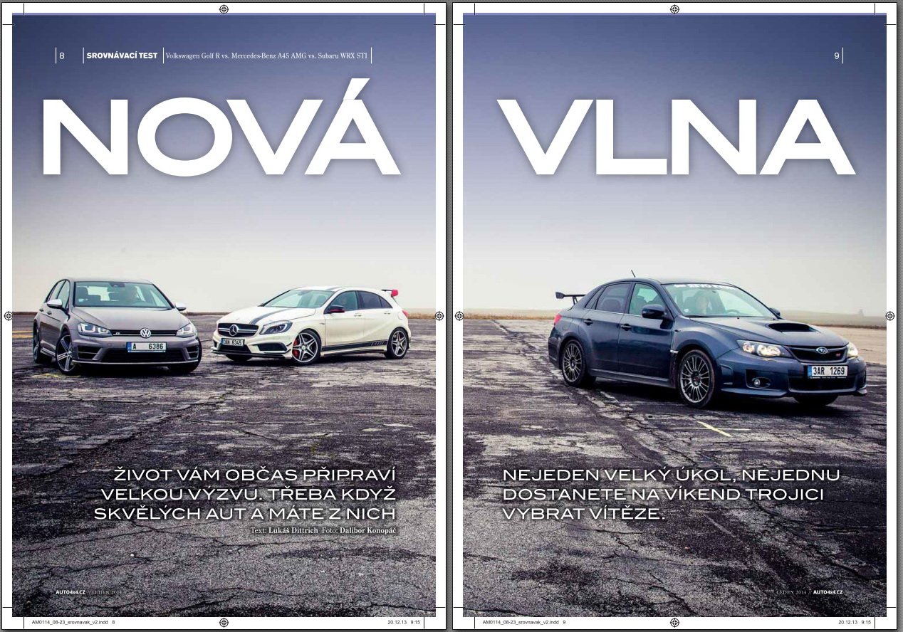 <p>První letošní číslo 4×4 AM lze označit za speciál, který potěší hlavně fanoušky rychlých kol. Na trhu je totiž mnoho aut, která mají pohon 4×4 a zároveň slouží k tomu, aby řidiče každý den potěšila na cestě do práce nebo za zábavou. Jim jsme věnovali všechny stránky lednového vydání a nebáli jsme se žádné velikostní kategorie.<br /><br />Začínáme proto s rychlými hatchbacky. Do souboje jsme postavili Mercedes-Benz A 45 AMG vybavený nejsilnějším čtyřválcovým motorem na světě, do testu dokonce doputoval ozdoben až groteskně velkým křídlem. Proti němu se zdál Volkswagen Golf R téměř obyčejný, jízdou nás ale přesvědčil o opaku. A nebyl by to souboj rychlých hatchbacků, kdyby do něj nezasáhlo Subaru WRX STI. Jak to nakonec dopadlo se dočtete na stránkách časopisu.</p>
