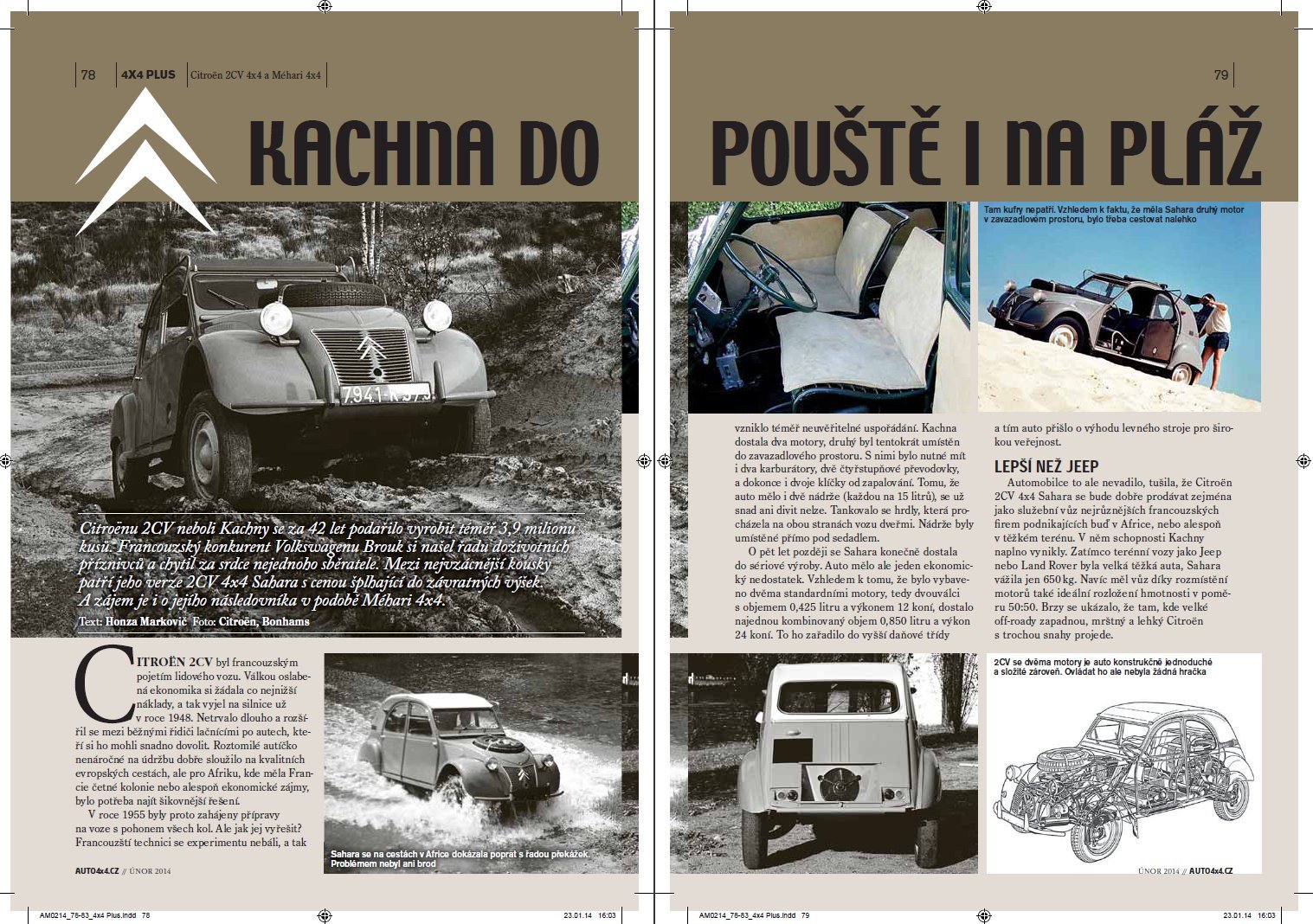 Únorovým číslem pokračujeme také v seriálu o historických vozech s pohonem všech kol. Tentokrát jsme se podívali na zoubek unikátu, který je těžko k sehnání. Jde o slavný Citroën 2CV 4×4 Sahara, který francouzská automobilka vyráběla pro firmy pracující v Africe. Auto mělo dva motory, každý pro jednu nápravu. A samozřejmě nelze vynechat ani jeho následovníka. Jde o model Méhari. Pokud vás baví automobilová historie, toto číslo vás tedy rozhodně nezklame.