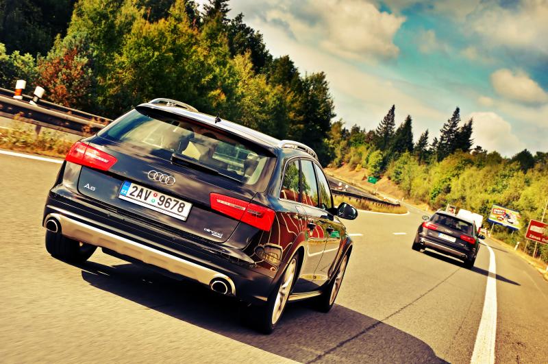 Potenciál pro zábavu za volantem tu rozhodně nechybí ani v jednom případě, řízení se citelně vylepšilo a motor posunutý nad přední nápravu spolu s upraveným středovým diferenciálem Torsen, který standardně posílá na zadní kola 60 % točivého momentu, přinesly o třídu lepší jízdní vlastnosti. BMW pětkové řady by se o svou prémiovou pozici mělo začít obávat. Allroad přidává ještě vzduchový podvozek, který lze o 10 mm snížit pro lepší aerodynamiku ve vyšších rychlostech, nebo až o 35 mm zvednout, pokud se náhodou vydáte na nějakou tu polňačku.