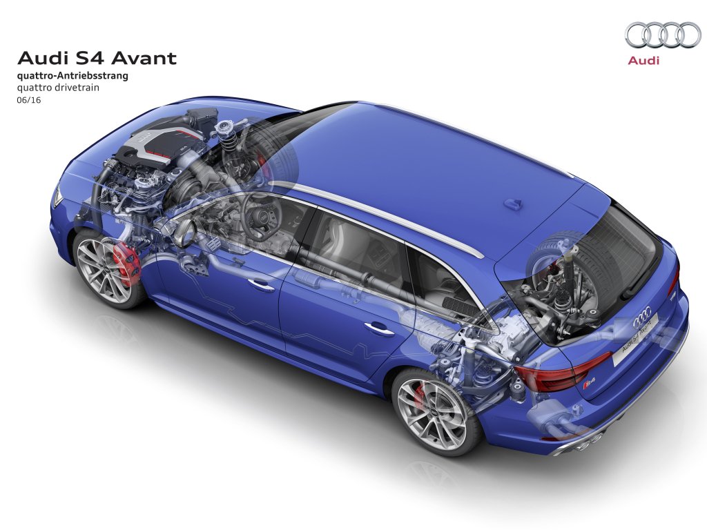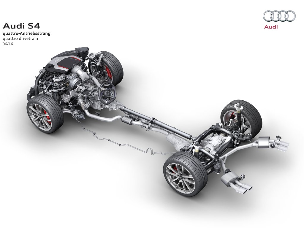 Příznivci čtyř kruhů se dnes dočkali. Audi konečně přijímá předobjednávky na nové modely Audi S4 Limuzína a Audi S4 Avant (kombi), které pohání přeplňovaný vidlicový šestiválec 3.0 TFSI o výkonu 260 kW (354 koní) a maximem točivého momentu 500 N.m v širokém rozpětí otáček od 1370 do 4500 min-1. Díky těmto parametrům zvládá S4 sprint z 0 na 100 km/h za 4,7 sekundy (Avant je horší o 0,2 sekundy) a ručička otáčkoměru se zastaví na 250 km/h, neboť maximálka je elektronicky omezená. Hnací síla je přenášena na vozovku prostřednictvím osmistupňové samočinné převodovky tiptronic a pohonu všech kol quattro s mezinápravovým diferenciálem Torsen.