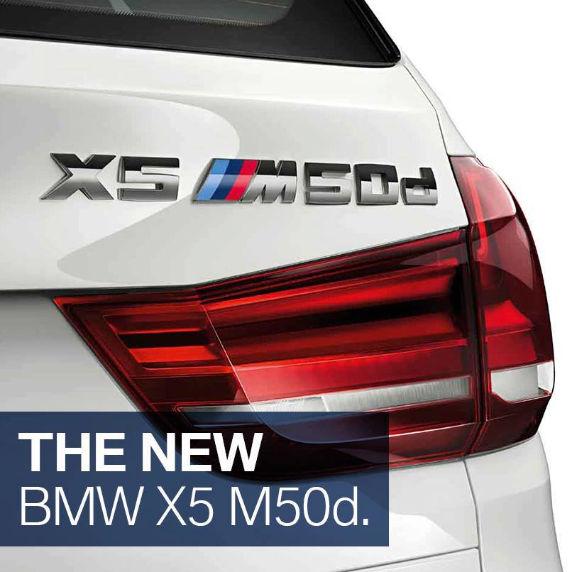 BMW X5 M50d znamená, že všechna čtyři kola vozu bude roztáčet třikrát přeplňovaný řadový šestiválec s turbodmychadly pracujícími pod vysokým tlakem a vybavenými proměnnou geometrií lopatek. Common-rail je obdařen piezo vstřikovači s maximálním tlakem 2200 barů. Třílitrový motor díky tomu produkuje výkon 381 koní při 4000 až 4400 ot/min a maximum točivého momentu 740 Nm při 2000 až 3000 ot/min.