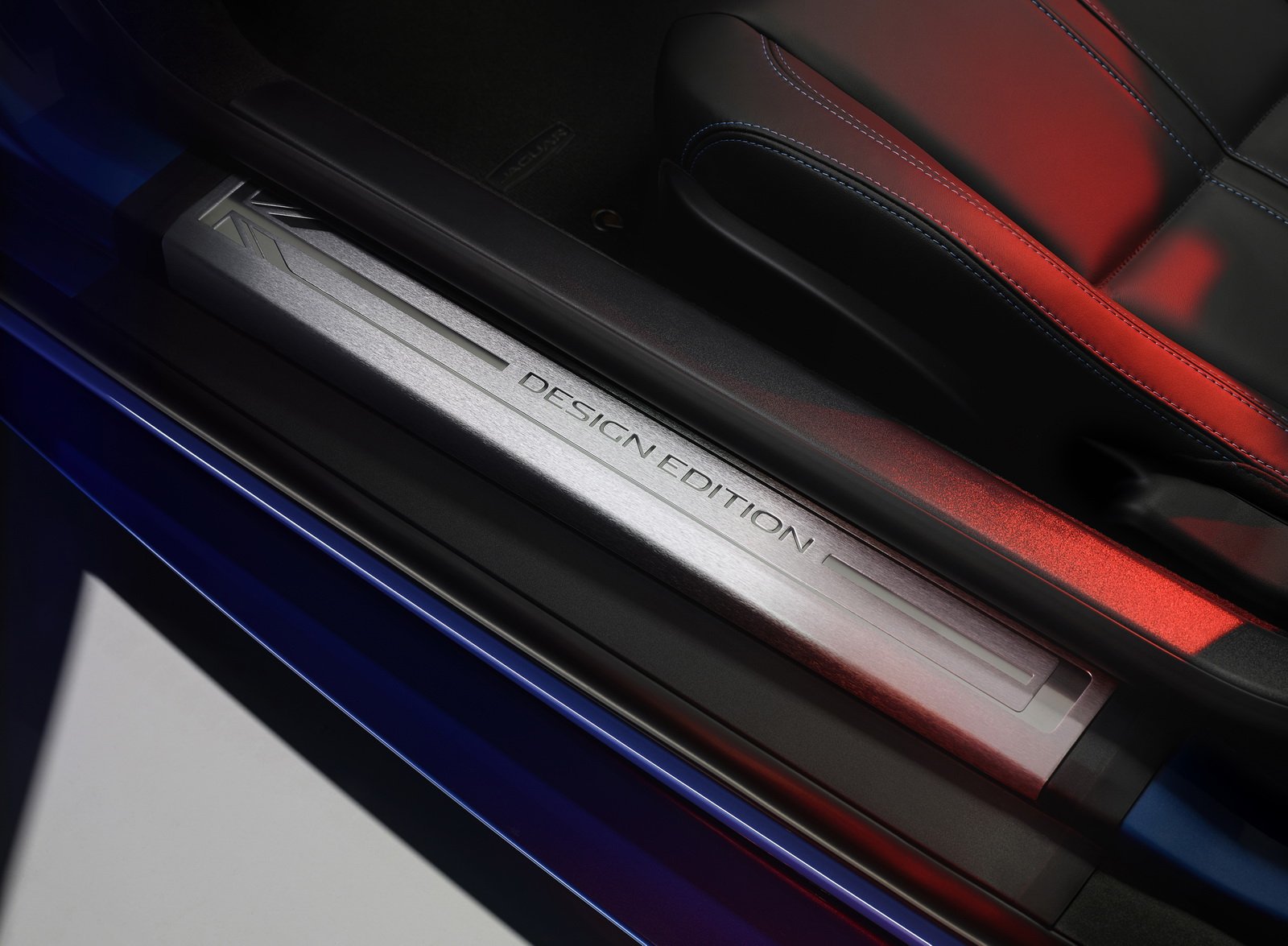 British Edition je zajímavá několika drobnostmi. Tak především si můžete F-Type pořídit v jasně modré barvě karoserie, což zatím možné nebylo. Kromě modré lze sáhnout také po bílé, černé nebo červené. Kola jsou u této edice dvacetipalcová a jsou matně šedá. Červené třmeny pak jasně naznačují přítomnost vylepšeného brzdného systému.