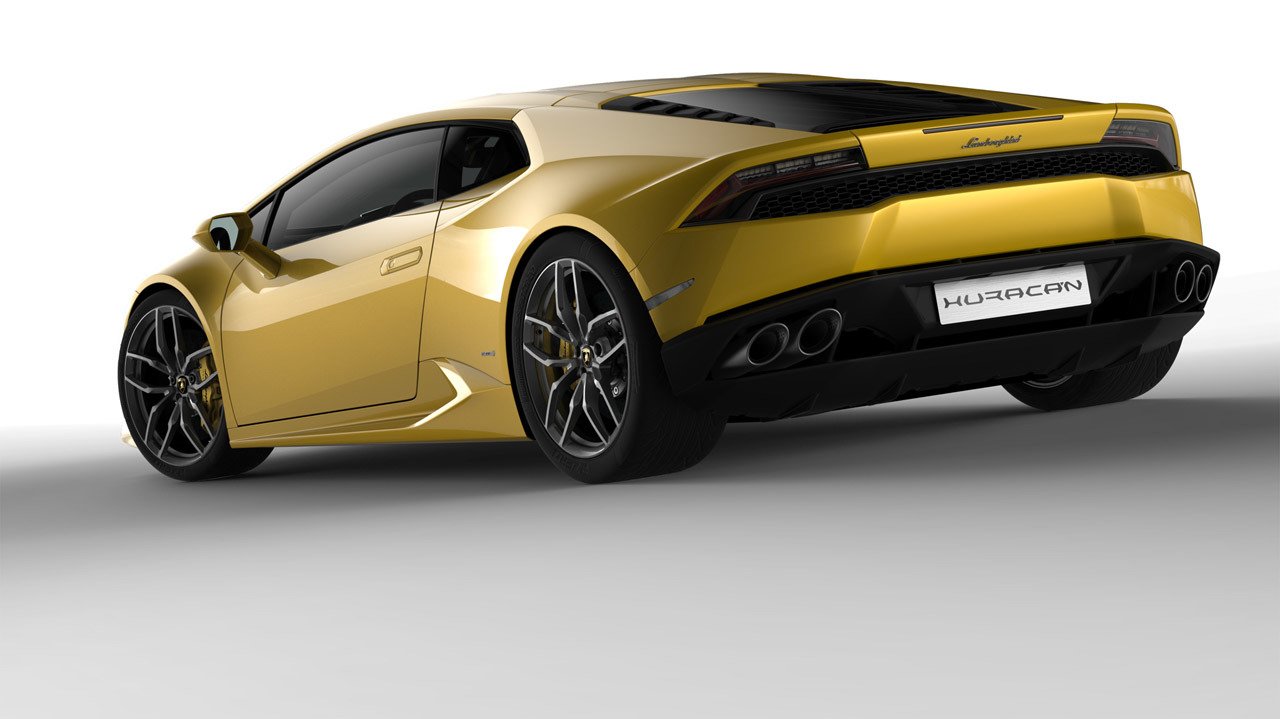 Toto je nové Lamborghini Huracán LP 610-4. Auto spojuje tvary svého předchůdce Gallarda i dražšího a většího Aventadoru. O dramatický vzhled se starají velké nasávací otvory na přídi nebo LED světlomety pro denní i noční svícení. Zadní průhledná část by pak mohla odhalovat pohled na motor. Pohledné jsou úzká brzdová světla. Čtyři výfuky zase slibují zvukový zážitek.