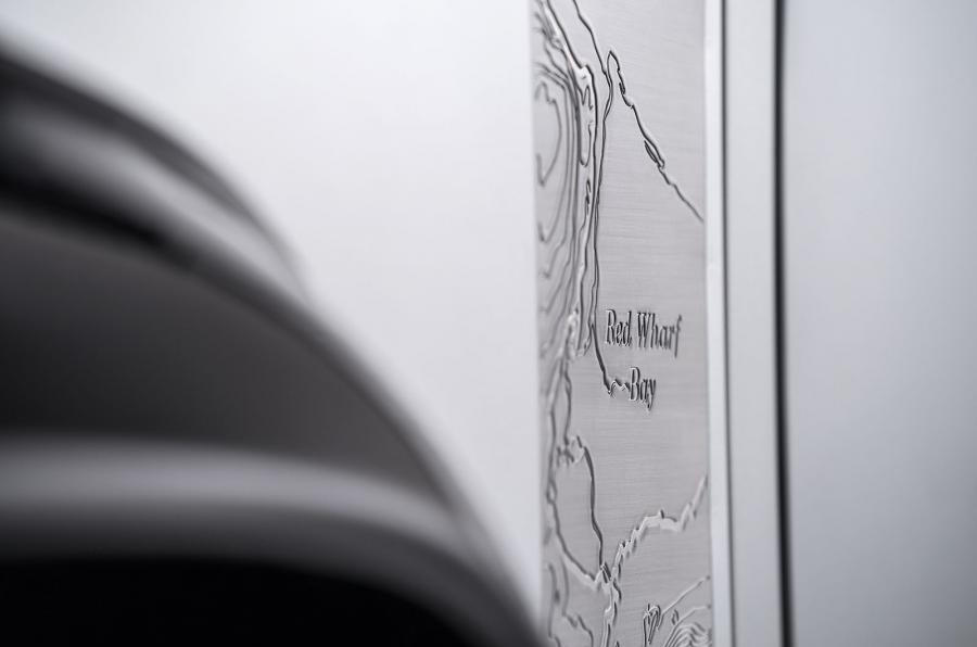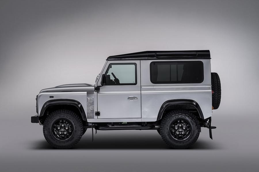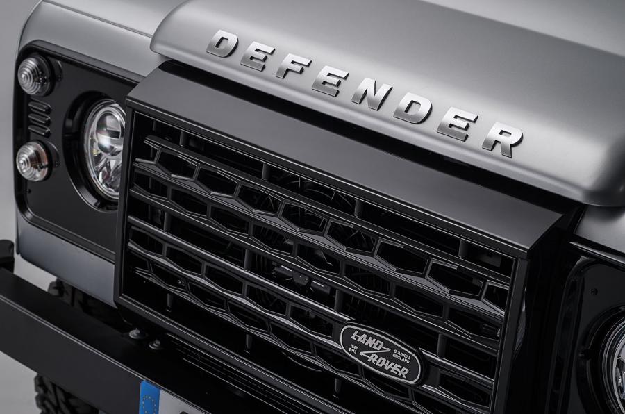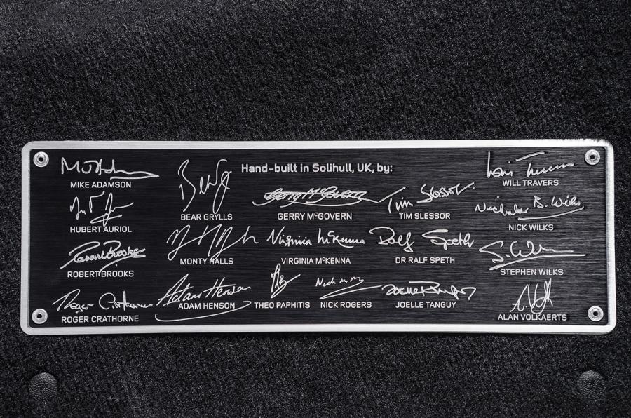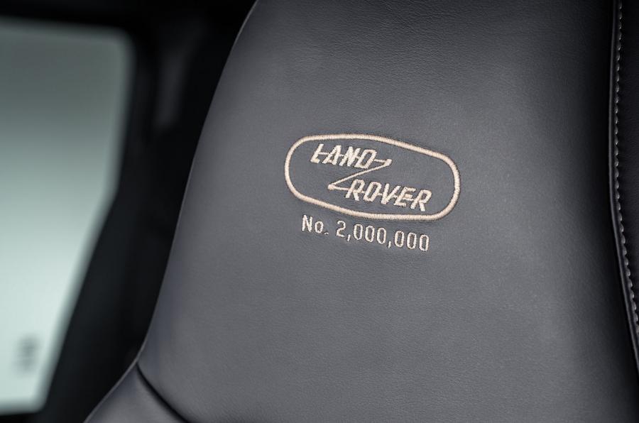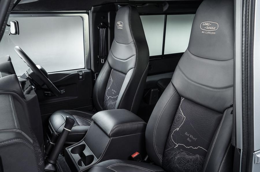 Jubilejní Defender dostal karoserii 90 SW a řadu specialit. Kromě černých kol to je například mapa na levém předním blatníku, která zobrazuje Red Wharf Bay, což je pláž, kde byl před mnoha lety poprvé načrtnut design tohoto auta do písku. Stejný motiv najdeme také na sedačkách v interiéru. Ty mají mimochodem kožené čalounění. A samozřejmě nemohou chybět plakety, které naznačují, že nejde o jen tak obyčejný Defender.