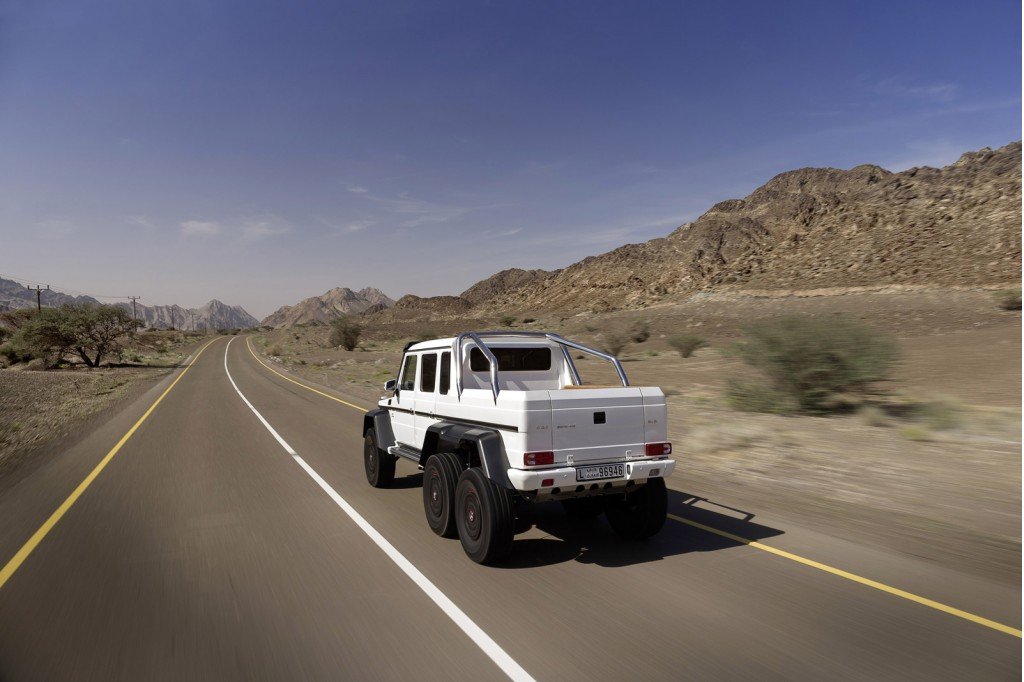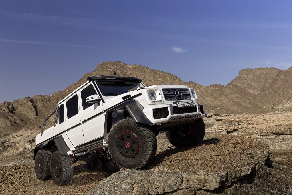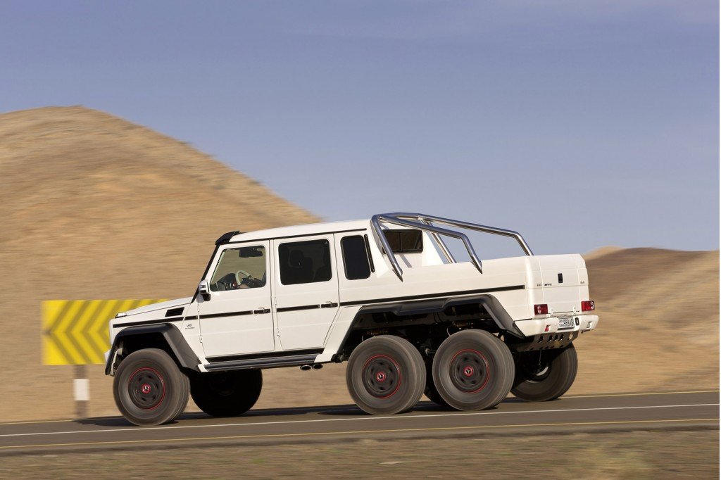 Kromě pořádně silného osmiválce totiž G 63 AMG disponuje hned třemi nápravami, poháněna nejsou tedy „jen“ čtyři kola, ale rovnou šest kol. To dává vozu spoustu možností. Dokáže překonat velké kameny i hluboký písek. A to nemluvíme o tom, že auto zvládne překonat více než metr hluboký brod. Výkon 544 koní pak jen znamená, že ani rychlost tomuto autu dělat problémy nebude.
