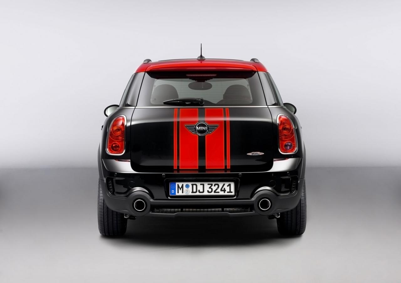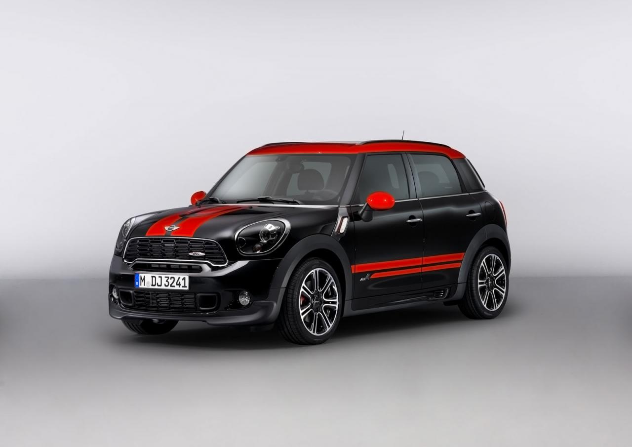 Mini Countryman JCW dostal působivý bodykit, snížený sportovní podvozek a speciální černo-rudé lakování. Litá kola mají průměr osmnáct palců a skrývají výkonnější brzdy. Výfukový systém byl také naladěn na dramatičtější notu. Uvnitř nalezneme dekory v červeném nebo černém pianovém laku, sportovní sedačky a volant, kovové pedály, přístroje s odlišným cejchováním a ozdobné lišty prahů s logem John Cooper Works. To dále zdobí masku chladiče, kryt motoru, páté dveře a spodní rameno volantu.