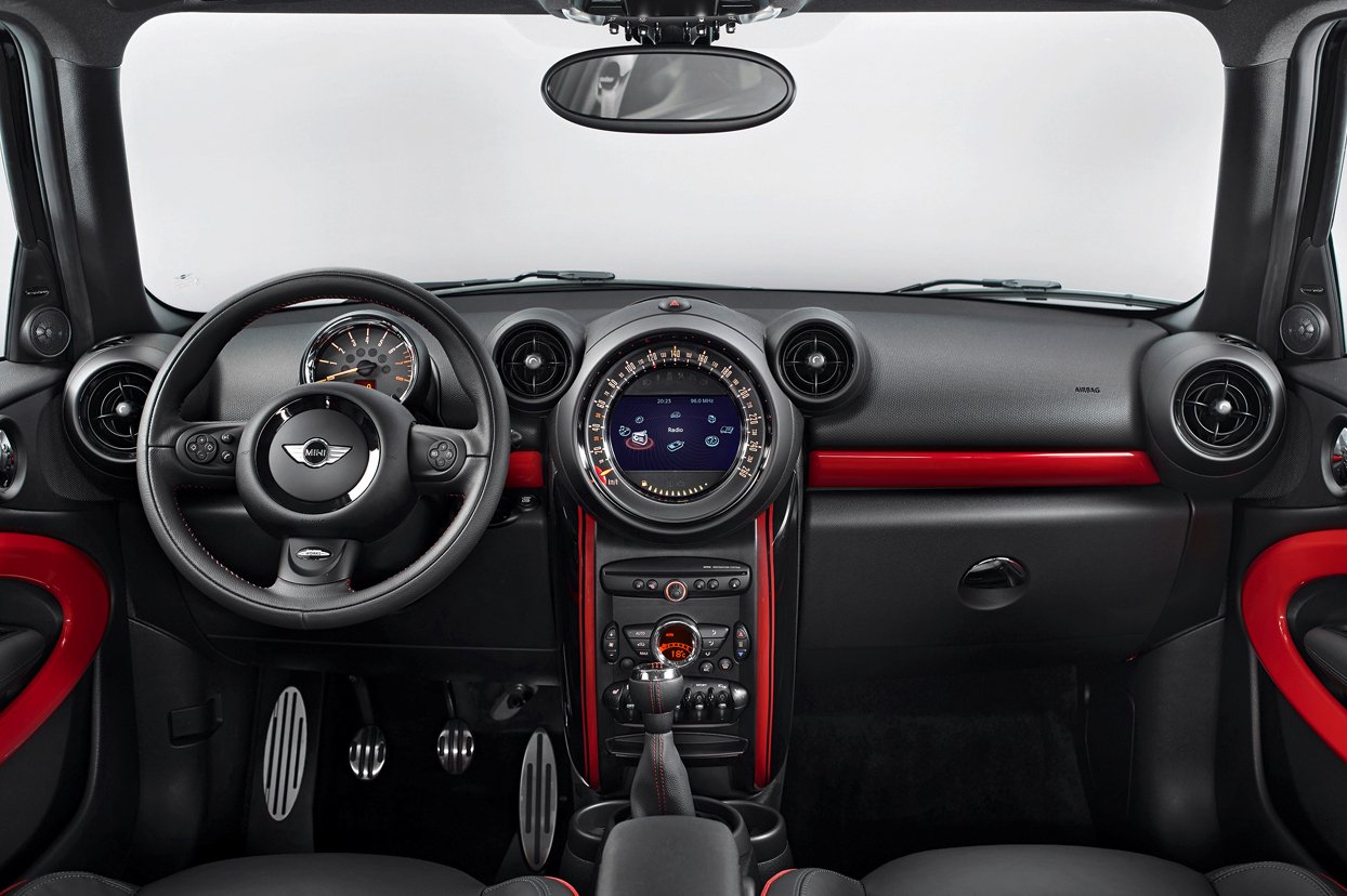 S označením JCW přichází do showroomů také stylová výbava. Mini Paceman proto dostal pohledná kola velikosti 18 palců. Černý lak karosérie pěkně kontrastuje s červenou střechou. Uvnitř najdete kožené sedačky i volant obšité červenou nití. Na několika místech je logo JCW.