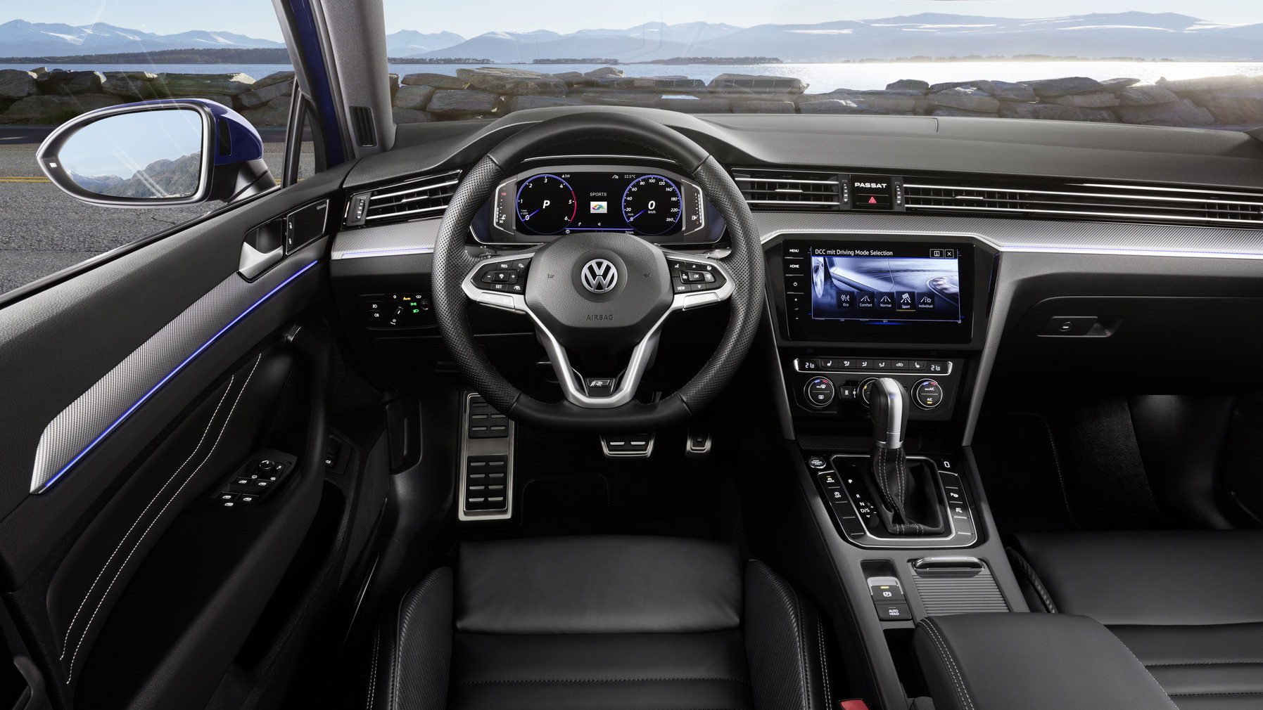 Pro sportovně zaměřené zákazníky je připraven Passat R-Line (od 964 900 Kč). Tato výbavová linie vychází ze stupně výbavy Elegance, k němuž přidává pakety R-Line Exteriér a Interiér. Jejich součástí jsou mimo jiné nárazníky a rozšířené boční prahy R-Line, 18“ litá kola, logo R-Line na masce chladiče, titanově černé čalounění stropu, ocelové prahové lišty vpředu a vzadu (vpředu s logem R-Line), multifunkční sportovní volant obšitý kůží s hliníkovými ozdobnými prvky a logem R-Line, pedály se vzhledem kartáčované oceli, sportovní sedadla čalouněná kůžemi Nappa a Carbon Style a ozdobná obložení z hliníku „Silver Rise“.