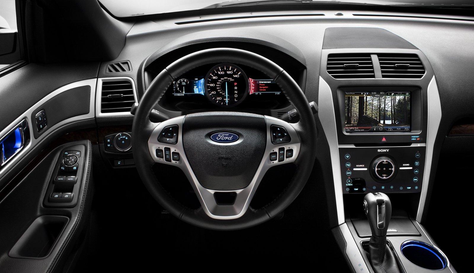 Explorer se nabízí ve třech úrovních výbavy: stejnojmenná základní obsahuje volant nastavitelný ve dvou osách, manuální klimatizaci, plnou elektrickou výbavu, multimediální systém MyFord s obrazovkou 4,2 palce a připojením pro externí přehrávače MP3 či iPod, uživatelské nastavení klíčů MyKey či čtyři zásuvky 12V. Vyšší výbava XLT přidává samočinné rozsvěcení světel, vyhřívaná boční zrcátka s integrovanými blikači, parkovací senzory, bezklíčové odemykání nebo automatickou převodovku SelectShift s možností manuálního řazení. Vrcholná Limited potom zahrnuje ambientní osvětlení, dvouzónovou automatickou klimatizaci, elektricky nastavitelné sedadlo řidiče a pedály (s pamětí), parkovací kameru, samostmívací vnitřní zpětné zrcátko, elektricky sklopná vnější zrcátka, bezklíčové startování a další prvky. V základní výbavě se dodávají ocelové disky o průměru 17 palců, vyšší úrovně pak zahrnují litá kola 18-20 palců.