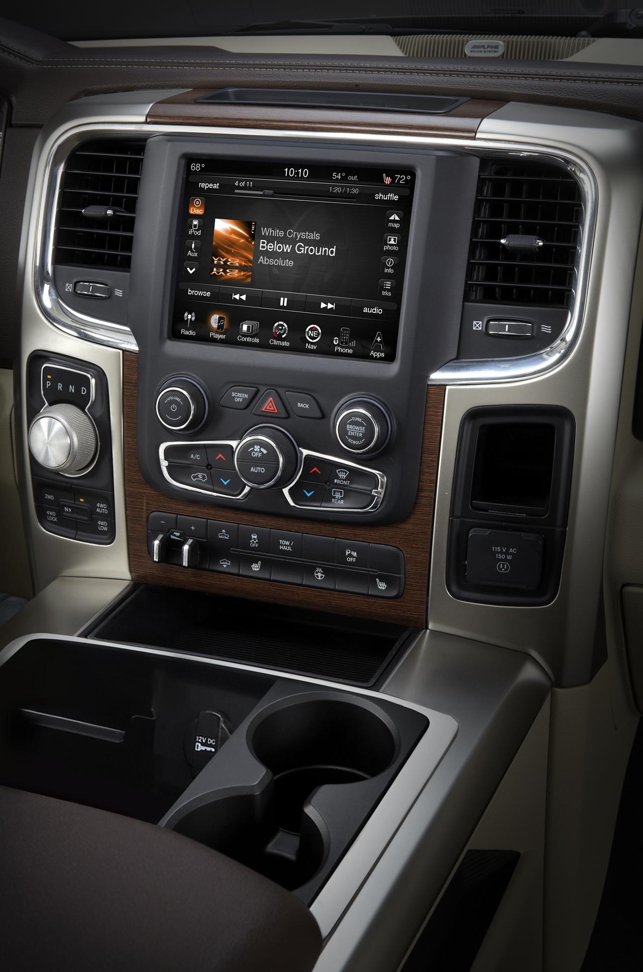 Ram 1500 (název Dodge už dříve vypadl) poznáte snadno podle ještě širší, bohatě pochromované masky, robustnějšího předního nárazníku a světelných diod v předních i koncových světlometech. Zájemci o dostatečnou přepravní kapacitu mohou zvolit novou délku ložné plochy 194 cm. Uvnitř najdeme upravenou přístrojovou desku s LCD panelem 3,5 palce, středovou konzoli s vylepšenou ergonomií i designem, inovovaný multimediální systém UConnect a jinou hlavici řadící páky.