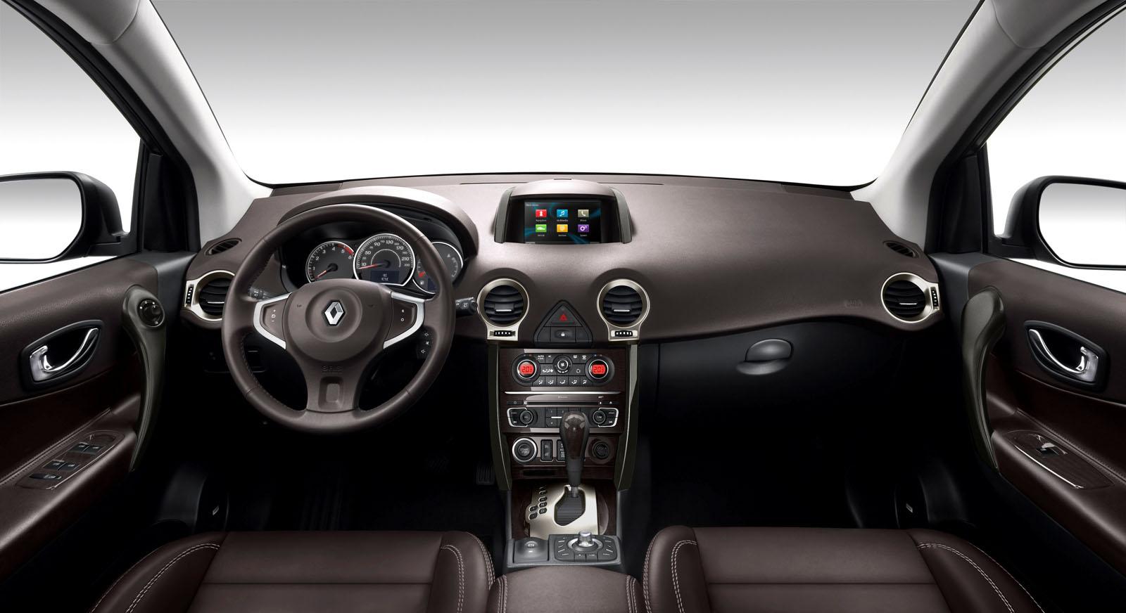 Uvnitř se už na změnách příliš nepracovalo. Renault však bude nabízet Koleos už se slušnou výbavou v základním provedení. Půjde například o duální klimatizaci, multimediální systém R-Link nebo dekor palubní desky z falešného dřeva. Připlácet se bude třeba za audio Bose, systém varující před střetem s jiným vozem v mrtvém úhlu nebo couvací kameru.