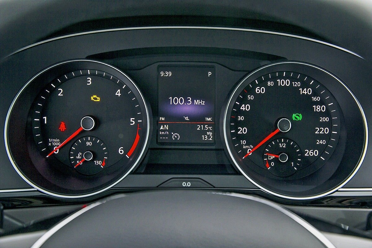 Palubní deska dostala design, který jde v ruku v ruce s byznysovým pojetím vozu. Většinu zákazníků Passatu totiž tvoří právě firemní klientela. Ta ocení decentní tvary, ale na pohled kvalitní materiály. Novinkou na palubě je možnost připlatit si za velký barevný displej, který nahradí klasické budíky otáčkoměru a rychloměru. Umožní řidiči zobrazit více informací nejen z palubního počítače.
