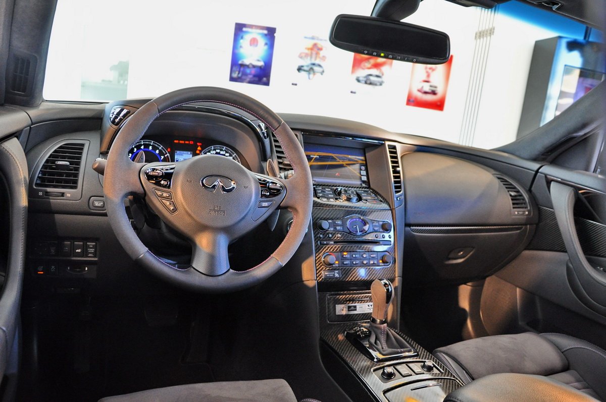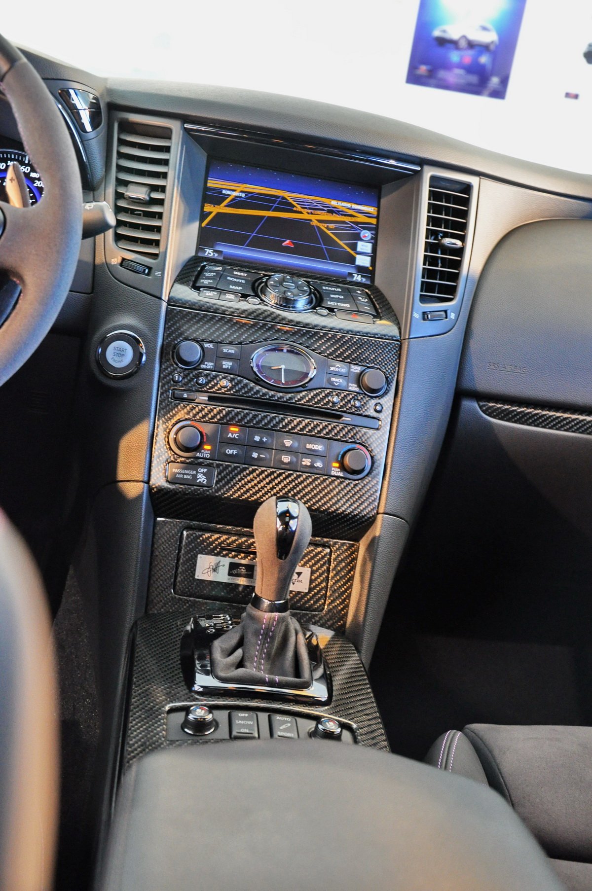 Karbon se nastěhoval samozřejmě také do interiéru a také o něm mohu s klidným svědomím napsat, že je působivý. Sem tam se sice objeví ovladač známý třeba z Nissanu Qashqai, což působí trochu nepatřičně, ale jinak Alcantara, dekory z pravého karbonu, prvotřídní kůže, sportovní sedadla nebo hořčíková pádla pod volantem (ty ale má i „obyčejné“ FX)… Všechno dohromady působí velice exkluzivně. Samozřejmě nesmí chybět ani plaketa oznamující neznalým cestujícím, o co vlastně jde.