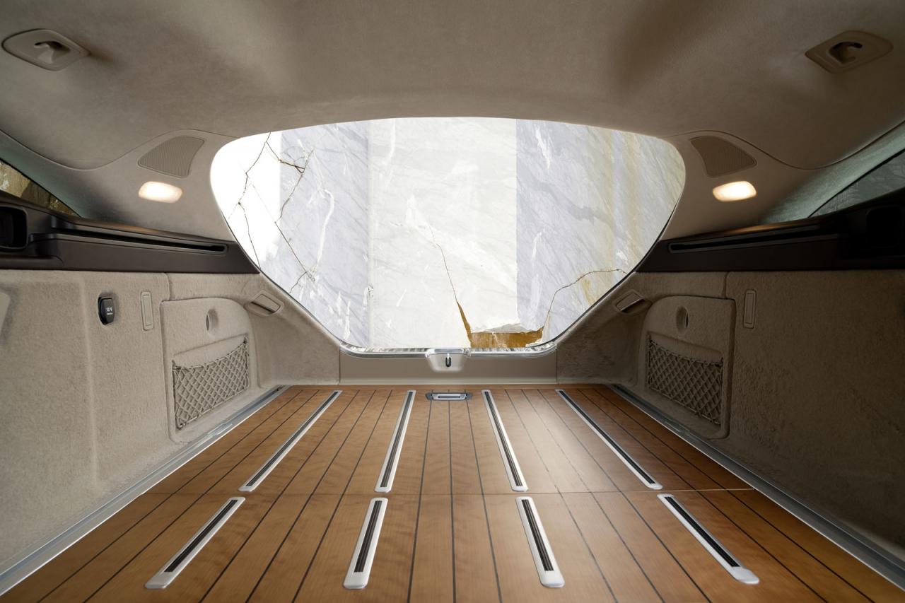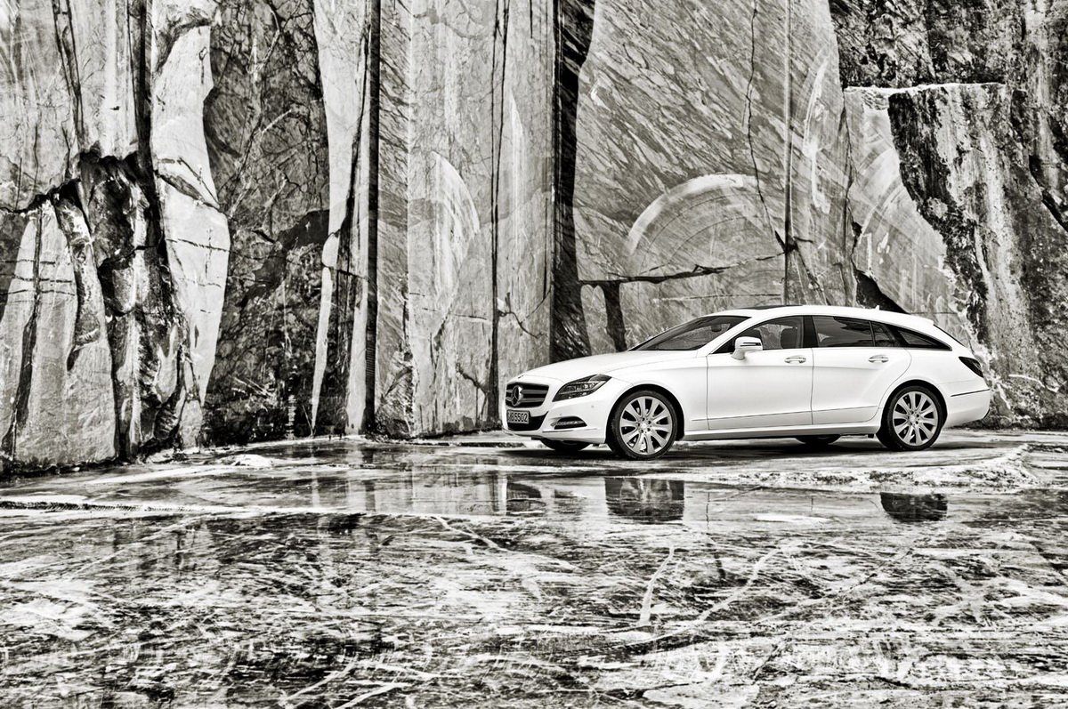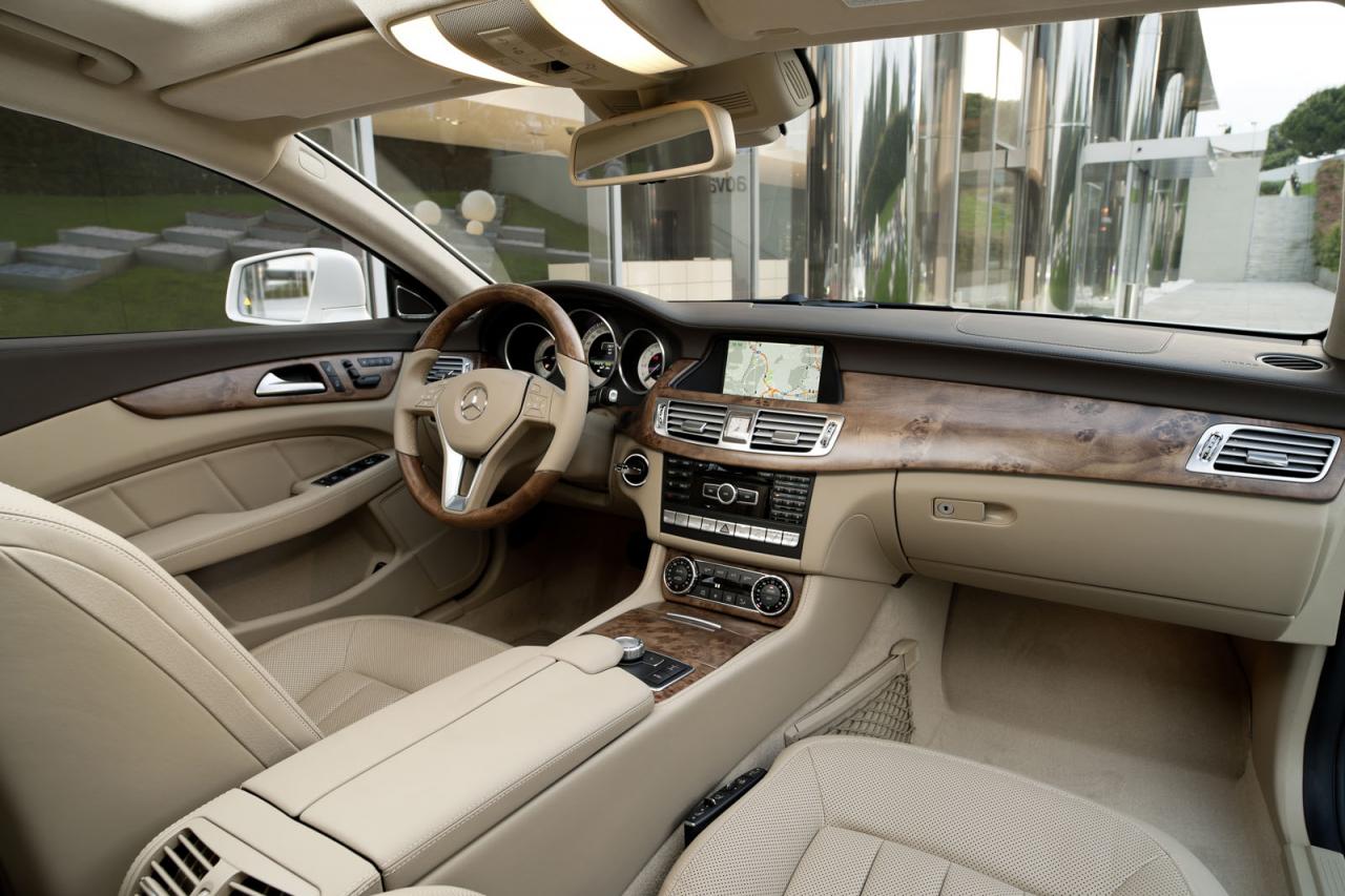 Kufr stylovější alternativy obřího kombi třídy E má základní objem 590 l a lze jej zvětšit až na 1550 l. Elektrické otvírání je standardem. V nabídce příplatkových prvků pak nechybí ani vyobrazená podlaha Designo kombinující třešňové a dubové dřevo s hliníkovými lištami a úchytnými oky. Varianty dekorů pro sedan i kombi obohatí porcelánové obložení, které se do CLS dostalo z luxusnější třídy S. Dalším dosud ne zcela obvyklým prvkem jsou i příplatkové hlavní světlomety tvořené kompletně diodami.
