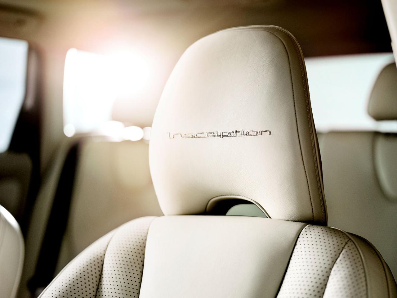 Vzorník barev koženého čalounění zahrnuje bílou Marble White, béžovou Soft Beige, červenohnědou Toscana Tan a černou Off Black. Lze je kombinovat se světlým či tmavým provedením palubní desky. Mimo to dostanete ještě ozdobnou výšivku s názvem edice na předních opěrkách hlavy, barevně sladěné kožené potahy loketní opěrky a výplní dveří, leštěné nášlapy opět s logem Inscription a elektrické seřizování bederní opěrky. Zákazníci si navíc mohou připlatit i za černé provedení stropního čalounění, dvacetipalcová litá kola Inscription Avior nebo stříbrnou metalízu Inscription Electric Silver.