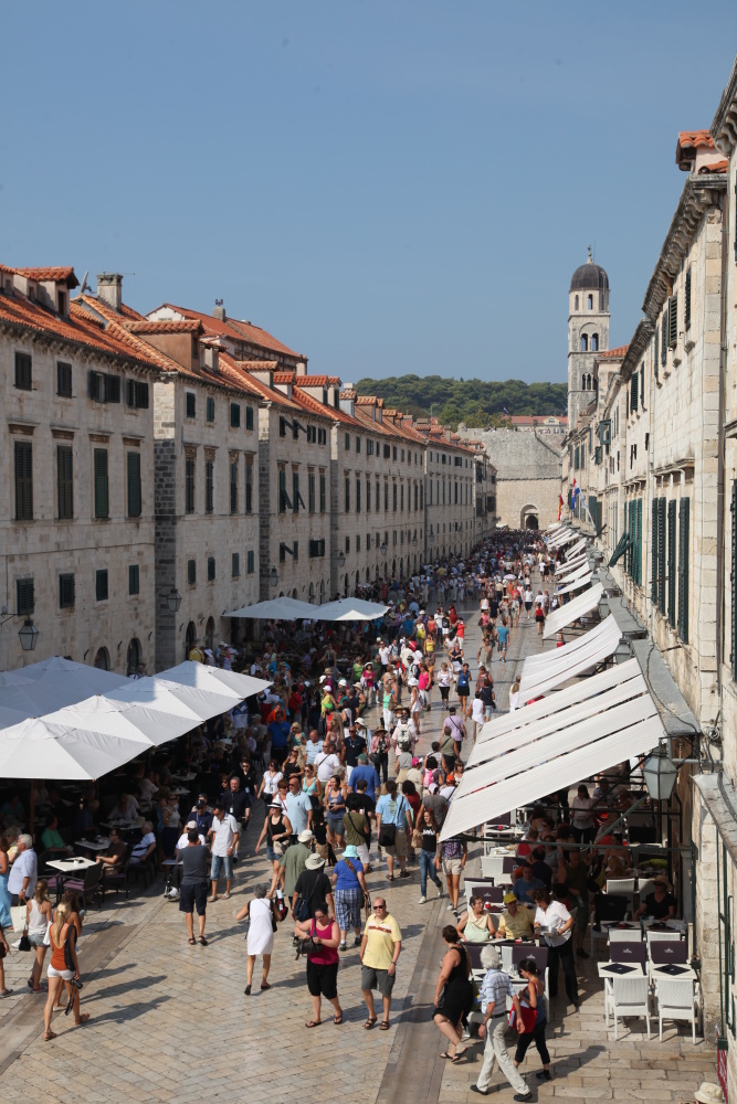 Do města můžete vstoupit nyní třemi branami, ale jen pěšky. Vjezd automobilům kromě zásobování není dovolen. Po staletí se na noc zvedaly padací mosty, aby uchránily město před nezvanými návštěvníky. Kromě procházky po hradbách je nejnavštěvovanějším místem dlouhé náměstí s kamennou dlažbou, nazývané Stradun, plné kaváren a dalších památek jako je Malá a Velká Onofriova fontána, 31 metrů vysoká zvonice a monumentální Sponza Palace postavený v goticko-renesančním stylu. A nesmím zapomenout na Orlandův sloup, který je symbolem státnosti a nezávislosti. Podle pověsti uchránil Dubrovník před Saracény. Sloup najdete před vchodem do barokního kostela, patrona Dubrovníku sv. Blažeje.Letos město slaví 600 let od jeho postavení.