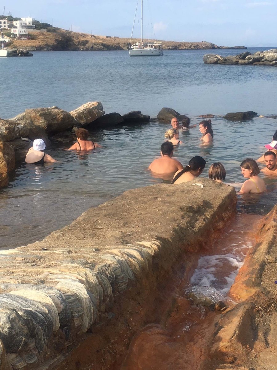 Nádherné ráno, počasí se umoudřilo. Cachtáme v horké vodě a sedíme tam, jako ve vaně v lázních, část naší posádky a dvě anglické penzistky, které nám vypráví, že do Loutrry jezdí již mnoho roků. Kombinace sirné vody a mořské je prý ideální. Po snídani popojíždíme do příjemné koupací zátoky a opět se zvedá vítr. Bohužel severní, kterému se říká meltemi. Odjíždíme směrem na Andros a jedeme čtyři hodiny proti větru, takže na motor a přistáváme v přístavu Batsi.