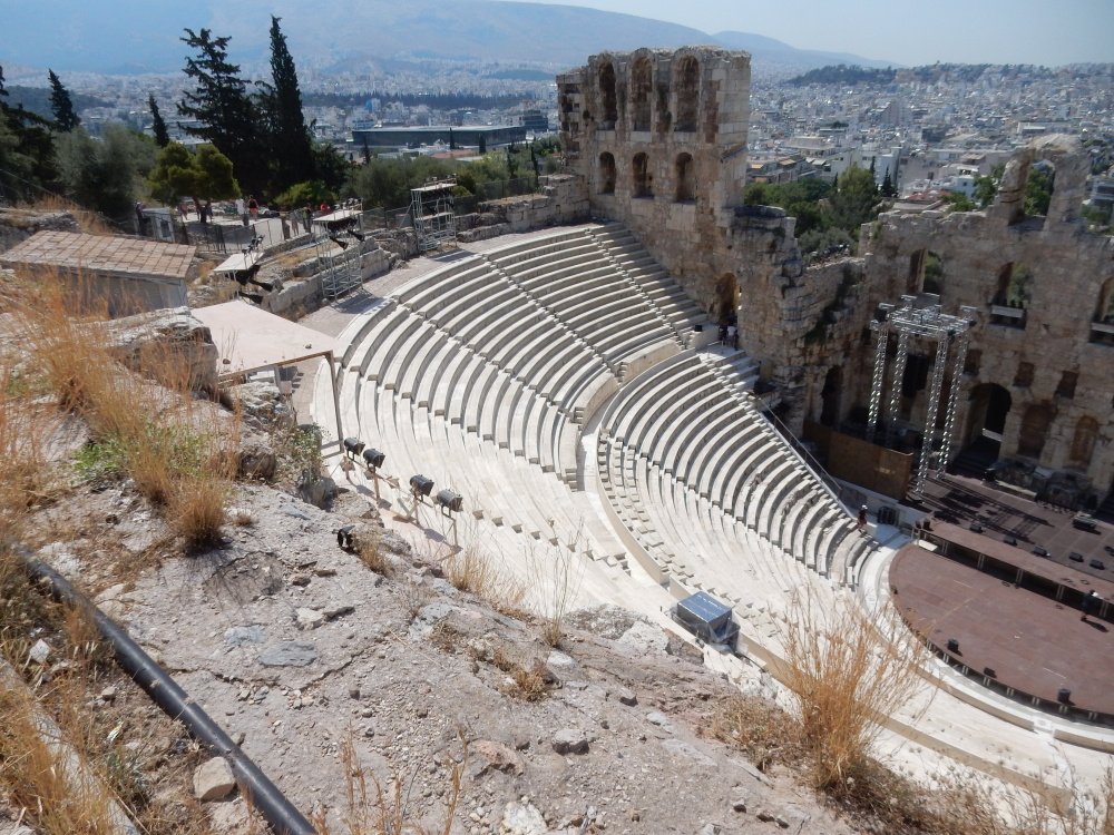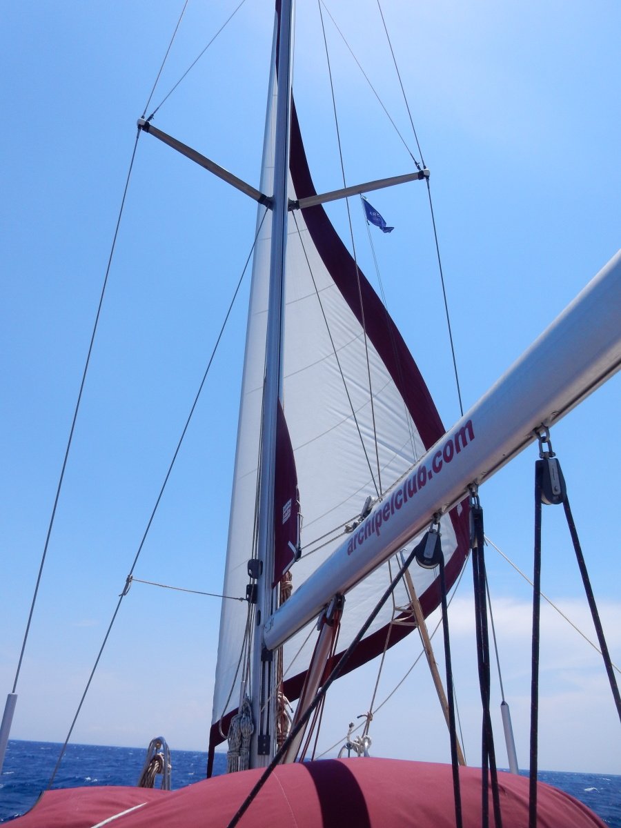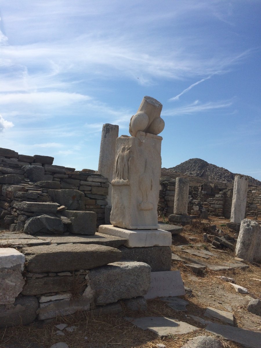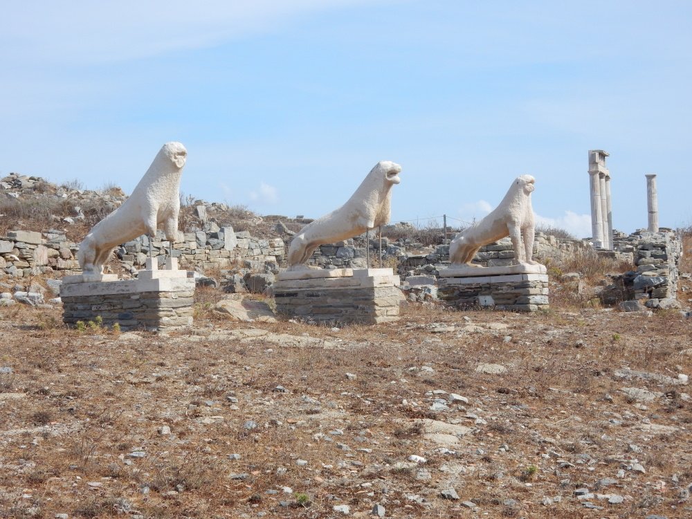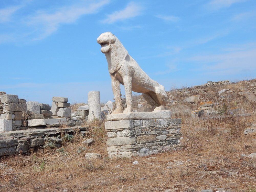 Odpoledne plachtíme na Rhiniu, opuštěný ostrov, kde se prý narodila Artemis. Fouká stále meltemi severní vítr a jedeme na plachty. Projíždíme průlivem mezi Rheniou a Delosem což je místo, kde stále hodně fičí. Kotvíme v South bay, kde jsme přes noc. Restaurace nikde a konečně vaříme na lodi. Špagety s lososem a avocadem a rajčaty jsou výborné. Spíme v neustále fičícím vichru meltemi a jsme v zátoce jen na kotvě. Ráno je příjemné se vykoupat a pak rychle přejíždíme na zakázáný ostrov Delos. Množství vykopávek, neuvěřitelně tajuplné a překrásné místo. Delos byl obydlen několik století před Kristem a bylo to obrovské město. Narodil se tam prý Apollón a většina chrámů, mu je zasvěcena. Kapitán nás vysazujte a odjíždí, u mola smí stát jen lodě s turisty z Mykonosu a Santorinni. Platíme vstupné a jdeme na prohlídku ruin. Ruiny a muzeum jsou ohromující, řecká kultura a vyspělost je neuvěřitelná. Ostrov je posvátný, nesmí se tam bydlet, umírat ani rodit. Nejzachovalejší je řada lvů a socha Apollona. Fascinující je torzo velkého falusu na vysokém sloupu. Stovky sloupů ze zbytků chrámů, obrovské divadlo. V muzeu jsou i zachovalé mosaiky, sgrafiti a mnoho užitkových předmětů. Šlapeme na vyhlídku, odkud přehlížíme obě zátoky, které chránily lodě proti větru. Údajně je to nejlépe chráněné místo na Kykládách na cestě mezi Evropou a Asii. Je smutné, že takto vyspělá civilizace byla zničená a zmizela z povrchu země.