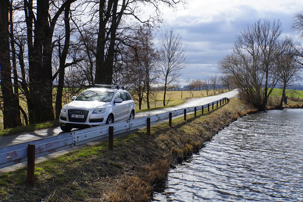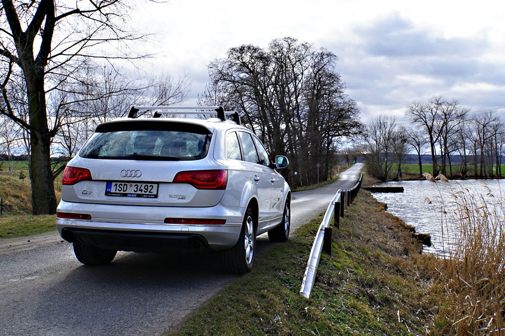 Q7 je jízdně nezáživná, je neobratná, nemotorná, do zatáček se pomalu skládá, naklání se a je nutné neustále bojovat s přesuny hmotnosti. Svižnější jízda je spíše k vzteku, a opravdu rychlá jízda dělá z cestujících nudle v bandě. Při pohodovém tempu je situace vcelku dobrá, řidič sedí poměrně vysoko a je mu dodáván pocit jasné nadvlády nad vším ostatním. Zároveň s tím je mu dopřáván skvělý výhled a pocit bezpečí. Ano, jen pocit bezpečí, nikoli bezpečí. Přepísknutím nájezdové rychlosti do zatáčky se totiž řidič snadno dostane do pořádné šlamastyky a z Q7 se ve vteřině stává jen těžko ovladatelný tank. Jasně, elektronika se velmi dlouho snaží situaci zachránit, fyzikální limity vzhledem k robustnosti a hmotnosti vozu jsou však neoblomné. Normální jízda je v případě vzduchového odpružení vcelku návyková a má něco do sebe. Situace je dobrá do doby, než přijdou na řadu nerovnosti a výmoly. Velká kola se špatně vypořádávají s nástrahami českých silnic a jízdní komfort se rapidně snižuje. A to od majestátního SUV čeká jen málokdo, že?