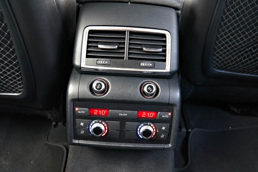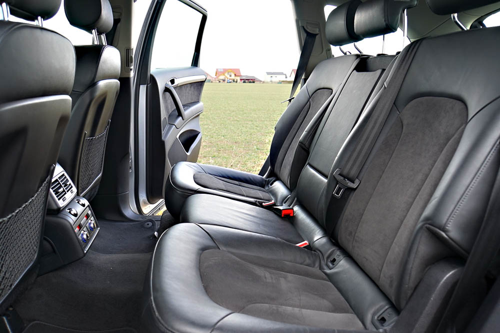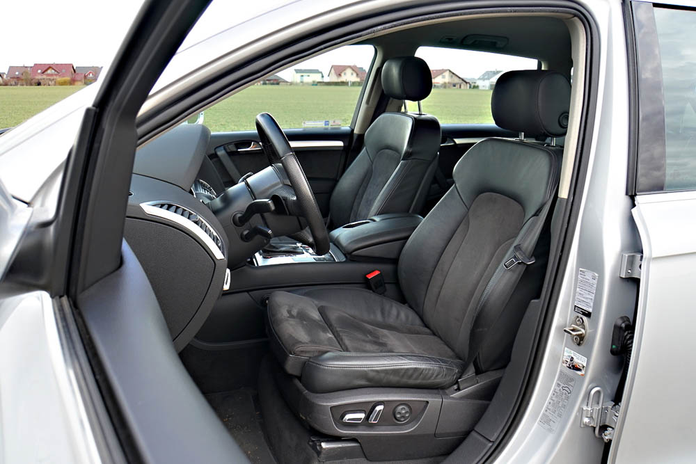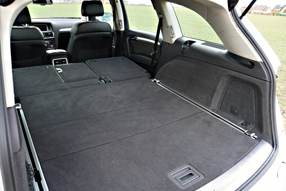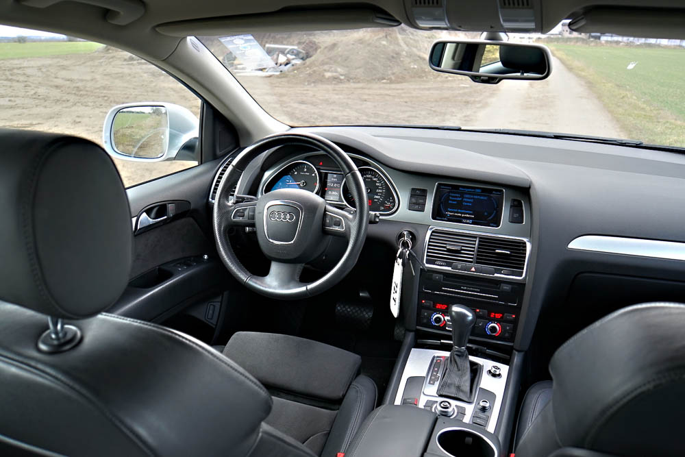 Pokud očekáváte na základě obrovské karoserie prostornou kabinu, budete nemile překvapeni. Audi centimetry nešetřilo a nepříliš zdařile využilo celkovou obestavěnou plochu ve prospěch cestujících. Mohutná palubní deska, silné dveře a celá řada robustně působících prvků snižují celkovou nabídku místa. Za volantem i na ostatních sedadlech si připadáte neohroženě, jako v tanku, což byl zajisté úmysl. Ve většině případů ovšem musíte zapomenout na bohatou výbavu, za tu si čtyři kruhy nechaly pořádně zaplatit. Za kožený paket jste vyplázli 110 00 Kč, za čtyřzónovou klimatizaci 22 tisíc, za multimediální rozhraní MMI 21 tisíc, za 20palcová kola klidně 80 tisíc, za navigační systém DVD 85 tisíc, za elektricky stavitelná sedadla 45 tisíc, za xenony 30 tisíc a za adaptivní pneumatické pérování 86 tisíc. A tak bych mohl pokračovat stále dále.