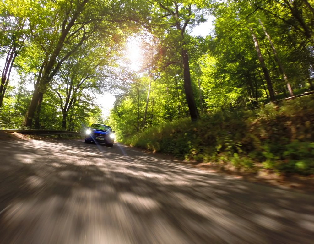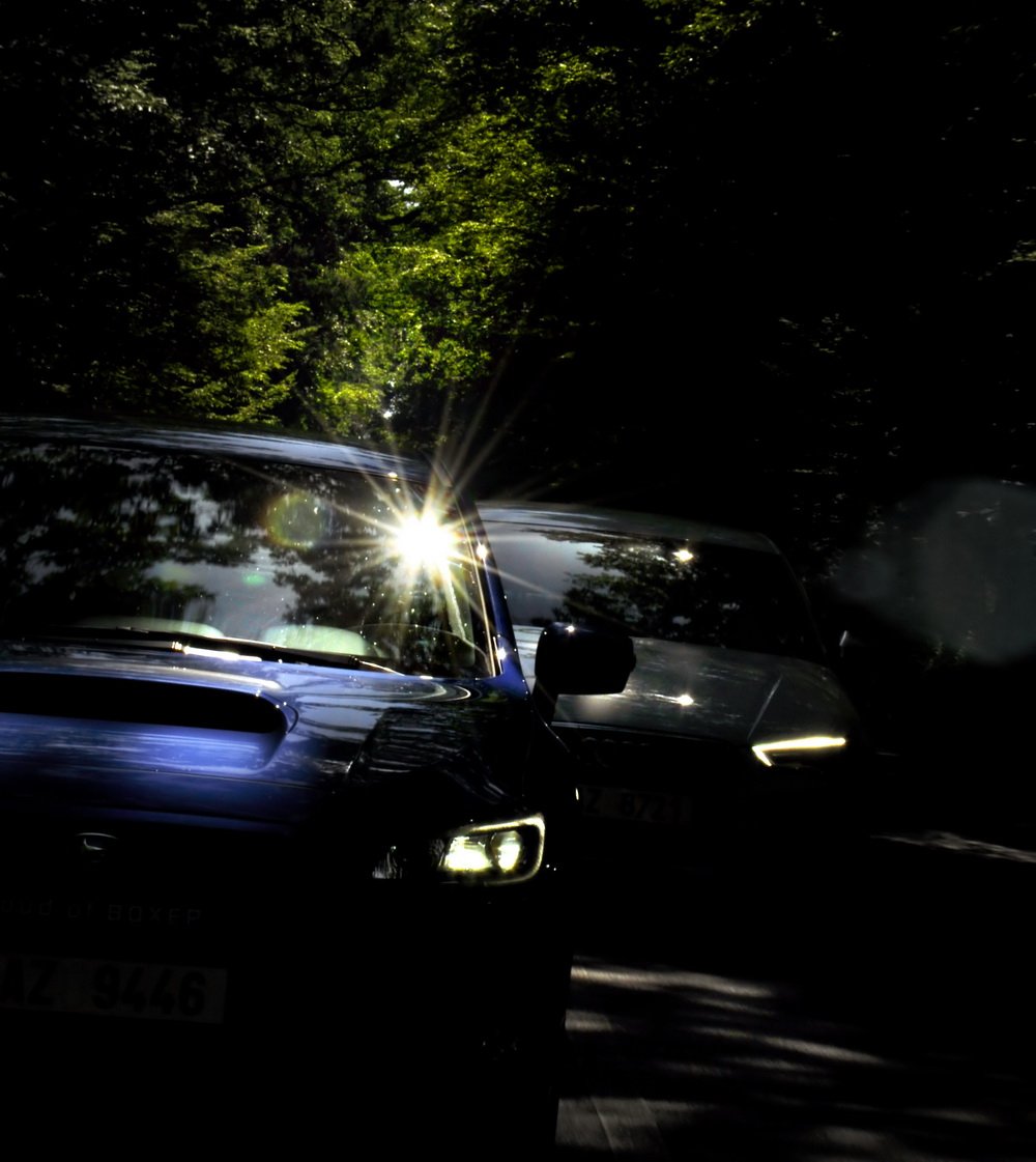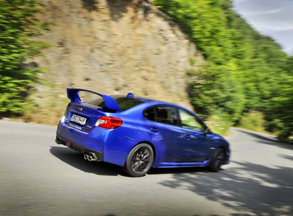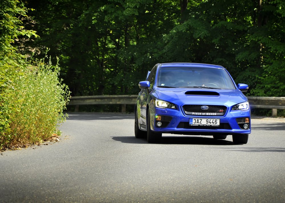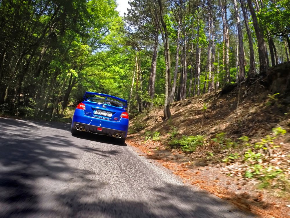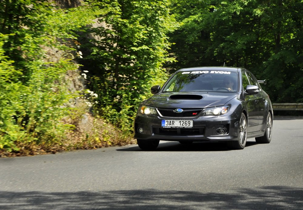 Končí vesnice, začíná hluboký les a v něm natažená silnice. V novém WRX STI sedí Lukáš, já za ním v S3 a poslední následuje starší WRX STI, spíš jako doprovod. Je mi jasné, co Lukáš udělá jako první za značkou oznamující konec vesnice. Šlápne na to. A já také. Oba máme přeplňované čtyřválce, Subaru je ale samozřejmě plochý a má a 0,5 l objemu navíc. Jde o stejnou jednotku, jakou používá i starší model. Všichni tři disponujeme výkonem 300 k.