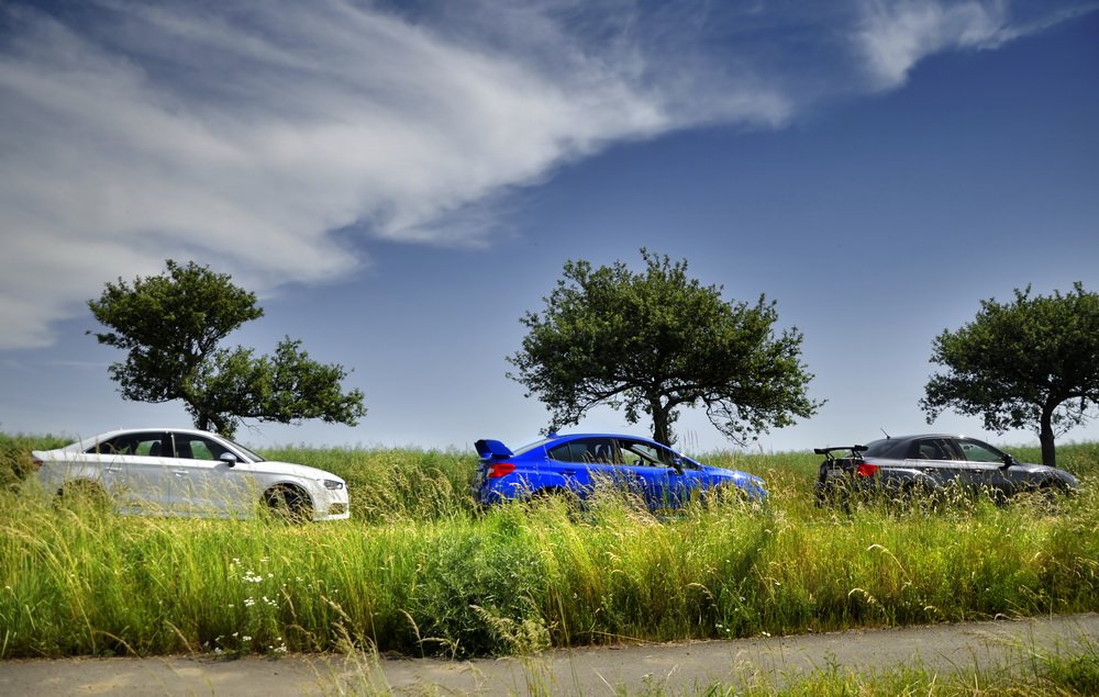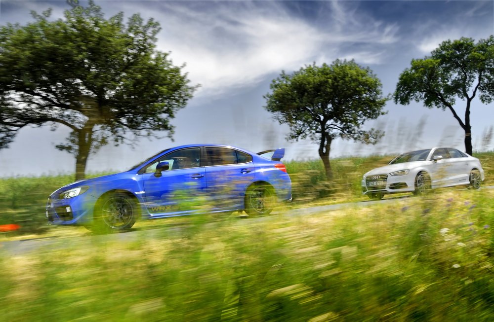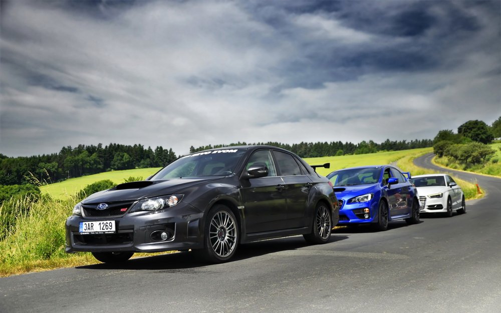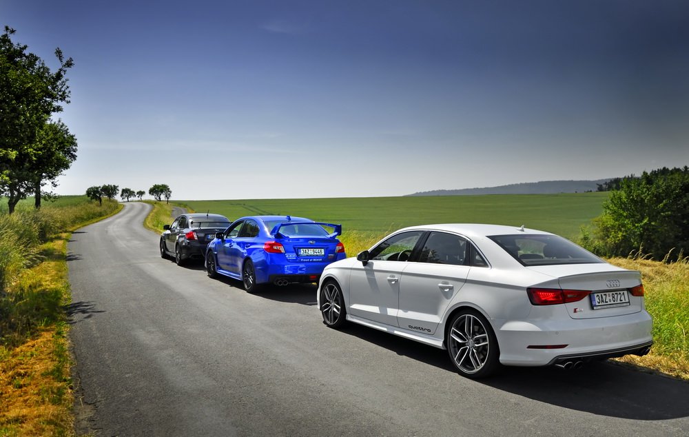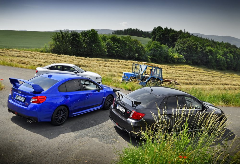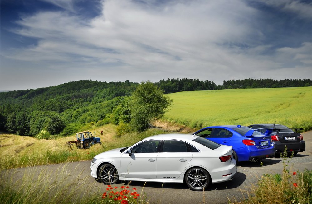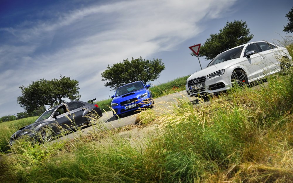 Nedal jsem se k módní policii, ať si každý obléká a nechává narůst, co chce. A stejně tak ať si každý vybere, jaké mu „sluší“ auto. Když tu teď přede mnou stojí zaparkované zbrusu nové Audi S3 a dvě generace našlapaných WRX STI, rád se svezu ve všech. Vlastně je to chvíle, na kterou jsem se dlouho těšil. Mít přímé srovnání je k nezaplacení.