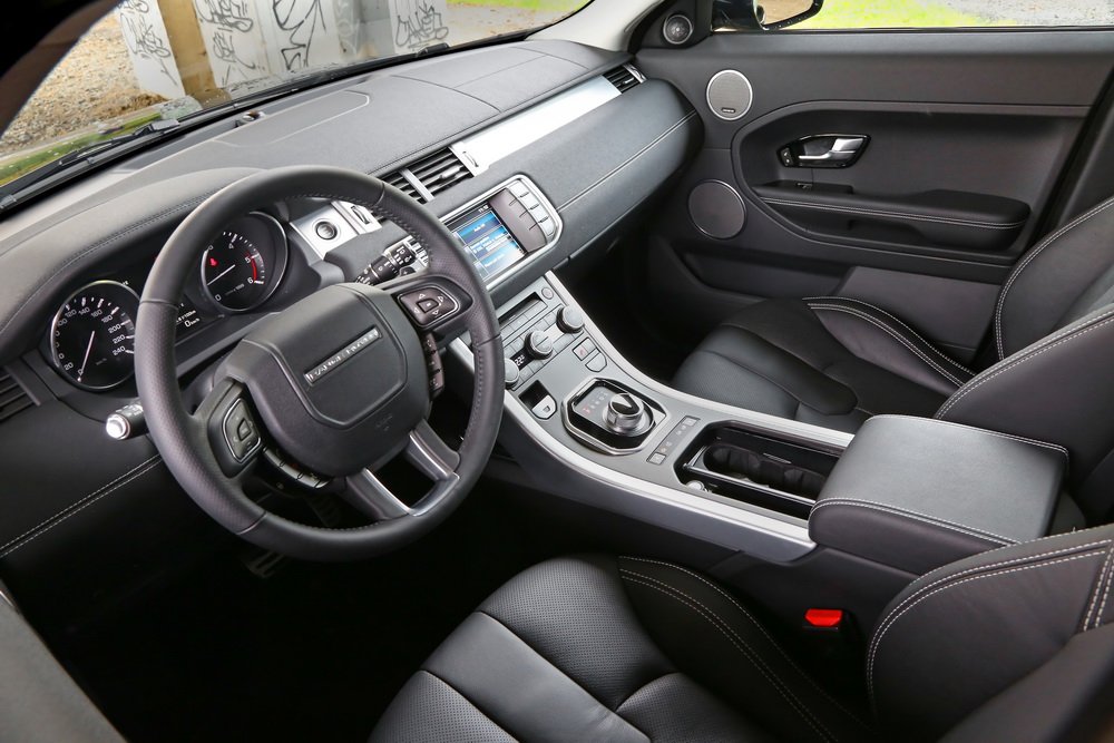 Ani Evoque se ale nenechá zahanbit. Možná proto, že s top motorem a v top výbavě vypadá podobně agresivně. Obrovská kola s výraznými chromovými disky a sportovní střih autu sluší. Při prvním pohledu na něj jsem se trochu bál, že uvnitř najdu příplatková sportovní sedadla s integrovanou hlavovou opěrkou, která jsem si příliš neoblíbil. Naštěstí jsem se mýlil a místo toho mě hýčkala komfortní křesla potažená černou kůží a zjemněná perforací.