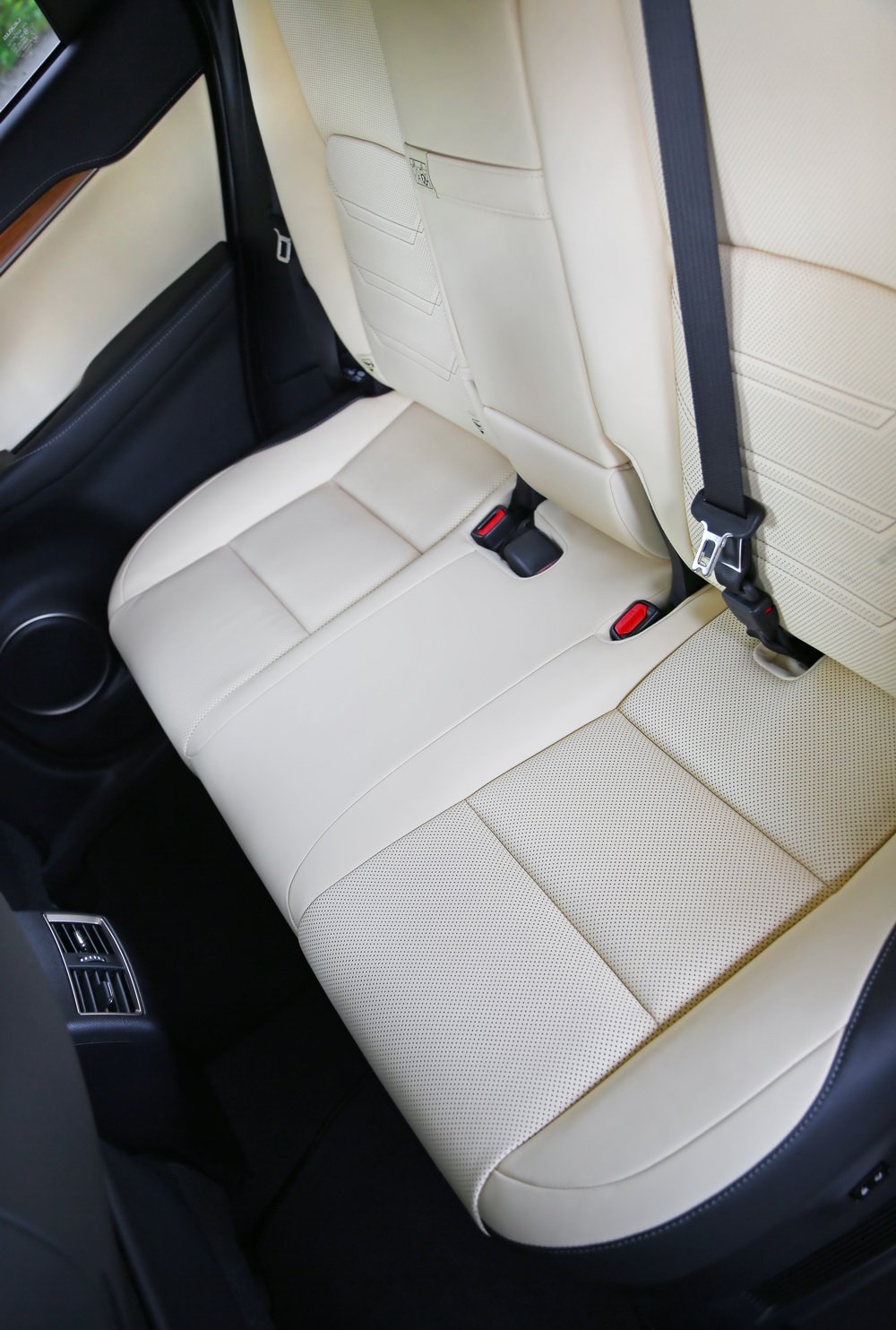 NX byl uvnitř určitě nápaditější, alespoň to platilo u zkoušeného kusu, i když kombinace světlé a tmavé kůže s hnědými dřevěnými lištami je možná pro každodenní používání nepraktická. Světlost kabiny navíc ještě zvyšovalo obrovské střešní okno. Palubní deska má stejně jako karoserie vozu odvážně ostré tvary, někteří spolujezdci mohli oči nechat na středovém panelu připomínajícím spíše moderní architektonický prvek v nějaké výstavní vile.