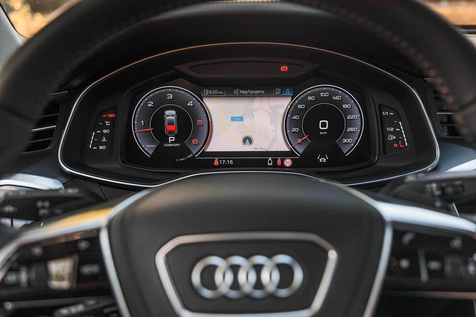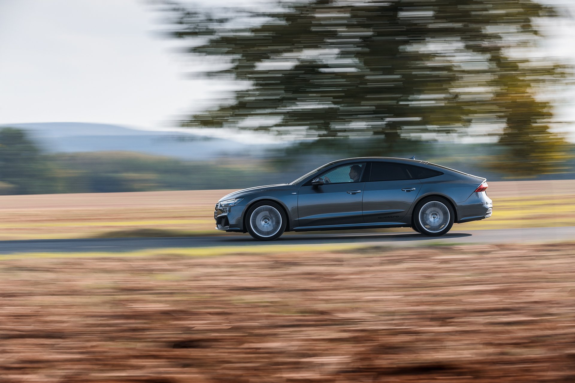 Aktuálně lze A7 koupit jen s testovaným třílitrovým dieselem 50 TDI (benzinové provedení 55 TFSI z nabídky dočasně zmizelo). Šestiválec přeplňovaný turbodmychadlem produkuje 210 kW výkonu. Maximum točivého momentu vrcholí hodnotou 620 Nm v rozmezí 2 250 až 3 000 otáček. Už tato čísla ukazují, kdo je tu dnes králem. V praxi se jedná o tzv. mild-hybrid s 48voltovým elektrickým okruhem a Audi se chlubí tím, že systém stop/start umí vypínat motor už od rychlosti 22 km/h a níže, kdežto s A7 můžete dokonce plachtit (motor se zcela vypne). Děje se tomu tak v rychlostech od 55 do 160 km/h, vždy však maximálně po dobu 40 sekund. To vše díky lithium-iontovému akumulátoru s kapacitou 10 Ah a rekuperaci energie.