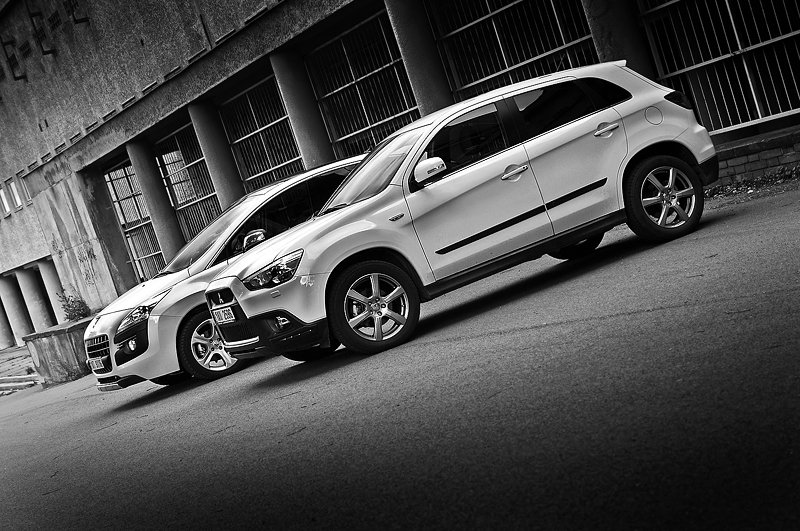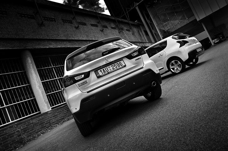Už na první pohled je jasné, že se obě auta tak trochu vymykají všeobecně zaběhnutným standardům této třídy. A to počínaje vzhledem. Vždyť většina konkurentů spíše připomíná zmenšeninu většího SUV. U Mitsubishi ASX je to ale naopak. Zdá se, jako by šlo o hatchback na vysokých kolech, což je docela překvapivé vzhledem k tomu, že vychází z čistokrevného SUV. Jeho ostře řezaná příď mu dodává na dynamice, stejně tak tvarování zbytku karosérie.