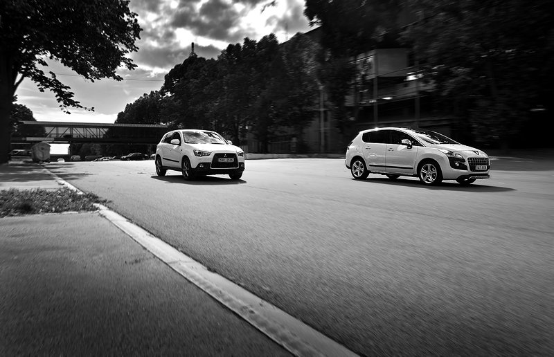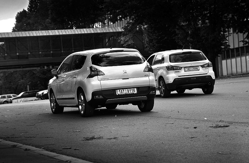 Další kapitolou, ve které se projevily rozdíly spojené se základem obou automobilů, jsou jízdní vlastnosti. Kdybych to zjednodušil, pak 3008 stojí na podvozku hatchbacku a také tak jezdí. Naproti tomu ASX vychází z většího SUV, což se v zatáčkách ukáže na sto procent. Není to tak dramatické, jak to zní, ale skutečnost je opravdu taková, že si je v zatáčkách Peugeot jistější. Je to dáno jak podvozkem z o nulu menšího sourozence, tak nižší výškou karoserie. Mitsubishi se více naklání, více se houpe, ale je pohodlnější, protože dokáže účinněji zamaskovat vady, díry a výtluky na našich komunikacích.