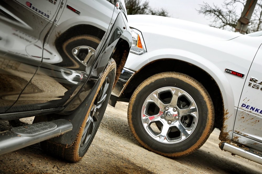 Určitě čekáte, že RAM v souboji vytasí nějaký ten pořádný benzinový osmiválec, který je tak žíznivý, že za ním permanentně musí jezdit cisterna s palivem. Kdepak, doba je jiná a značka RAM (dříve Dodge RAM) patří do portfolia Fiatu. To znamená, že ho pohání naftový šestiválec od italské společnosti VM Motori. Chod jednotky o výkonu 240 koní a záběru 569 Nm koriguje osmistupňová automatická převodovka ZF. Jak evropské!
