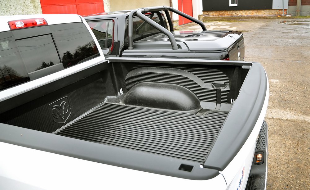 Při porovnání rozměrů byste čekali, že RAM bohatě překoná svou ložnou polochou německého soupeře. Ano, je větší, ale ne o tolik, než se na první pohled zdá. Američan má prostor 1650 x 1540 mm, zatímco Němec 1620 x 1555 mm. Oba vozy jsou tak praktické a pohodlně poslouží k přestěhování menšího bytu na pár otoček. Nemluvě o tom, že za ně můžete zapřáhnout pořádné přívěsy s čímkoliv.