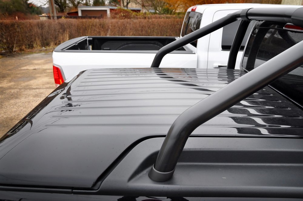 Evropskou stylovou barvou je zřejmě černá. Alespoň se to zdá z provedení Dark Label, které podle názvu dodává Amaroku spoustu černých doplňků. Kromě barvy karoserie jsou to ještě černá kola, černý rám nad ložnou plochou nebo její kryt. Ten je velmi praktickým doplňkem, protože na rozdíl od RAMu tak dokáže schovat náklad před nenechavci nebo nepřízní počasí. Problém byl ale v tom, že u testovaného kusu se rozbil zámek. A tak jsme se pod něj za celý týden nepodívali.