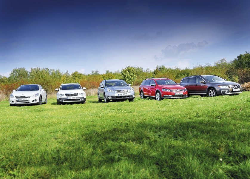 Nedávné přírůstky, o kterých byla řeč, nesou jméno Peugeot 508 RXH a Volkswagen Passat Alltrack. Oba dva už jsme měli v klasickém redakčním testu a oba dva se už nějaký ten pátek prodávají, takže je zbytečné je podrobněji představovat. Kromě těchto tří nováčků jsme si vzali do poněkud většího srovnávacího testu ještě naopak dva naprosté klasiky této třídy – Subaru Outback, a především Volvo XC70, což je určitě jeden z prvních automobilů, které se vám vybaví, když se řekne „allroad“.