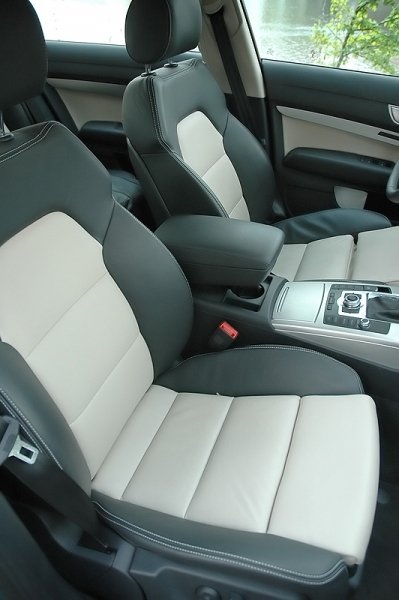 Nemyslíme si ale, že by se majitel Audi A6 choval takto nevybíravě. Mnohem více pravděpodobnější je luxusní plavba silnicí doplněná jistotou bleskového předjíždění, při kterém můžete využít sebemenší skulinku. Tradičním průvodcem na cestách budou materiály nejvyšší kvality. Rozlehlá křesla potažená dvoubarevnou kůží více hýčkají, než že by držely v ostrých zatáčkách. Slícování dílů palubní desky je špičkové, a že by něco vrzalo? No dovolte!?