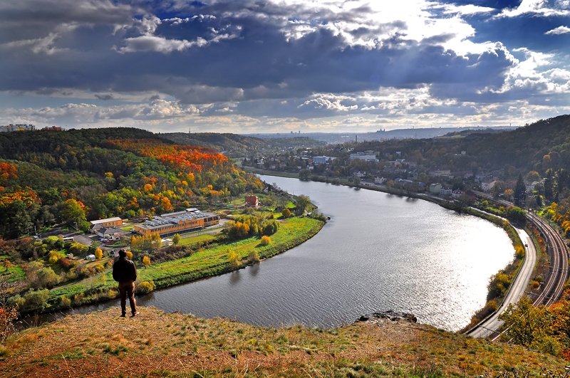 Pořizujeme sérii fotografií a opouštíme opuštěné místo. Provoz je plynulý a tak za pár minut parkujeme před hřbitovem pod takzvanou Pražskou plošinou neboli vrchem Děvín. Jeho nejvyšší část se nachází ve výšce 310 m.n.m. a je součástí přírodní rezervace Prokopské údolí. Ze strany od Žvahova jsme nahoře za 15 minut a prohlížíme si Barrandovský most, oblast Podolí, naproti Pankrác. Ale není to jen o pohledu na Prahu, když se otočíte směrem od řeky, můžete shlédnout panorama Pražského Semmeringu, tedy železniční trať č. 122, která vede ze Smíchova do Jinonic.