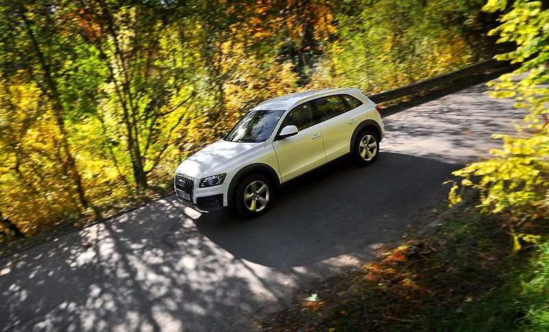 Když už je řeč o terénu, doplňme, že Audi Q5 je vybaveno světlou výškou 200 mm, zdolá svah s úhlem 31° a dokáže se brodit ve vodě hluboké až půl metru. Pohon všech kol nese označení Quattro, tedy je řeč o stále poháněných nápravách pomocí mezinápravového diferenciálu Torsen, kdy dopředu proudí 40%, dozadu pak 60% výkonu motoru. Pokud to podmínky vyžadují, je možné přenést na předek maximálně 65%, zadní náprava disponuje nanejvýš osmdesáti pěti procenty.