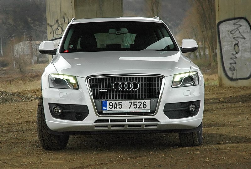 Audi Q5 se hodně inspirovala napříč všemi řadami automobilky. Jde hlavně o A4, na čelní masce najdeme i prvky ze sportovních verzí jako RS6. Vyzdvihnutá maska chladiče pěkně kontrastuje se spíše sportovním nárazníkem. Nezbytné LED denní svítilny se velmi povedly, u Q5 opisují horní oblouk světlometů. Zboku působí Audi Q5 dynamicky i se svou velkou světlou výškou. Svažující se záď odkazuje na vozy kupé a dává autu šmrnc. Zpětná zrcátka přebraná z Q7 jsou až příliš velká, navíc z pozice řidiče trochu brání ve výhledu.