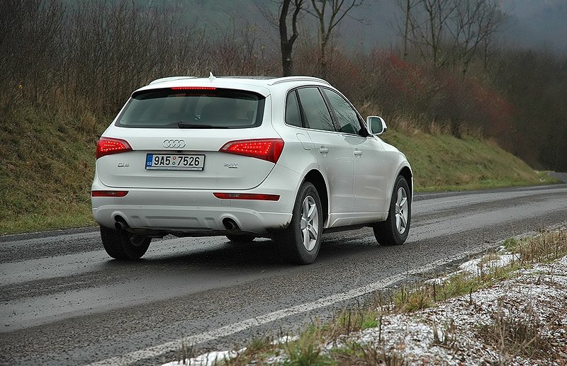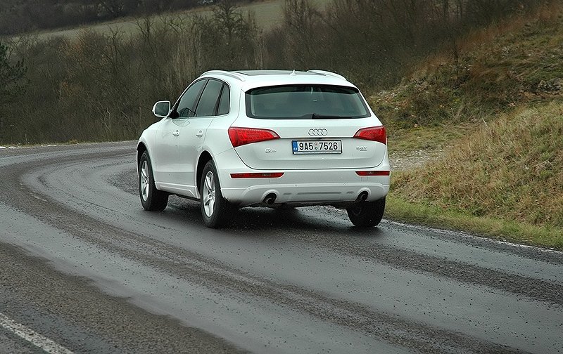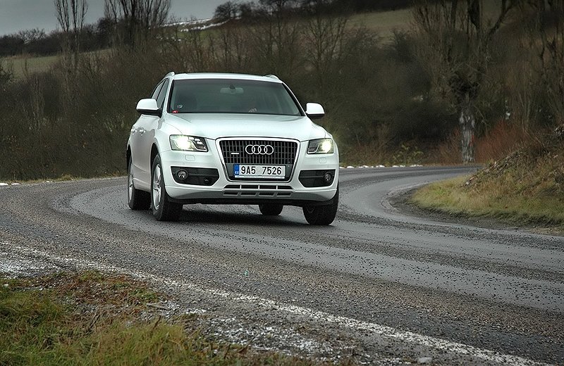 Podvozek Audi Q5 je naladěn špičkově, vůz skvěle podrží i na klikatých okreskách a určitě si s ním můžete užít zábavnou sportovní jízdu. O bezpečnost se stará poslední generace pohonu quattro, která za normálních podmínek tahá na zadní kola 60 procent síly, v případě podkluzu až 85 procent. S tímto vozem se do limitů jen tak nedostanete. Za jeho volantem se z vás dozajista stane velmi sebevědomý řidič. Svůj díl na tom nese i řízení, které na Audi klade poměrně značný odpor, což zlepšuje komunikaci mezi řidičem a předními koly.
