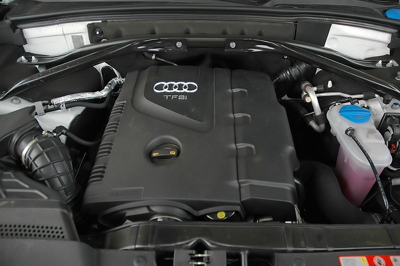 Pod kapotou námi testovaného vozu jsme našli dvoulitrový přeplňovaný čtyřválec 2.0 TFSI. Díky koncernové spolupráci Audi, Volkswagenu a Škody jsme už měli v rukou hned několik jeho variant slabších i silnějších a vždy jsme s jeho dynamikou byli nad míru spokojeni. V případě Audi Q5 dosahuje výkonu 211 koní a točivého momentu 350 Nm. Ani tentokrát mu nemůžeme mnoho vyčíst.