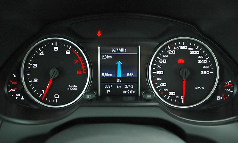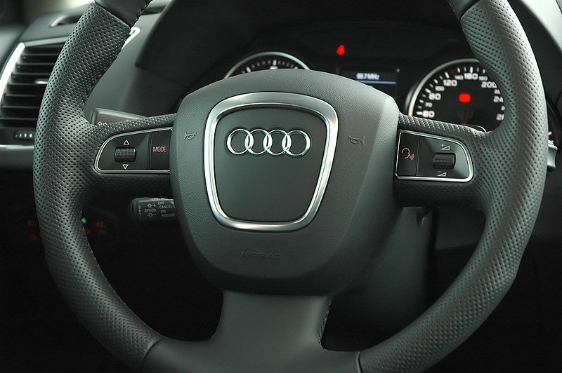 Po usednutí se řidič znalý novějších modelů Audi musí okamžitě cítit jako doma. Palubní deska je totiž převzatá více méně z Audi A4. Platí pro volant s multimediálními tlačítky s lehkým sportovním tvarováním i dobře čitelné budíky umístěné spolu s barevným displejem palubního počítače v jedné kapličce.