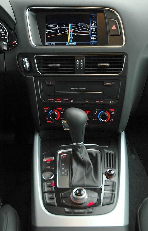 Středový panel si ale tolik příkladu ze sedanu brát nemusel, když jsme totiž měli A4 v testu, vadila nám horší kvalita některých ovladačů klimatizace a také jejich trochu pomotané ovládání.To bohužel zůstalo i v případě Q5. Vadí nám, že když chcete změnit teplotu, stačí otočit ovladačem, kdežto pro změnu síly proudění vzduchu musíte nejdříve zmáčknout příslušné tlačítko a pak teprve tím samým ovladačem vybrat. Totéž platí pro vyhřívání sedadel i směr ventilace.Ale budiž, takový nedostatek se dá snadno přežít a kdybychom měli Q5 k dispozici déle, určitě bychom si na něj po několika týdnech zvykli.