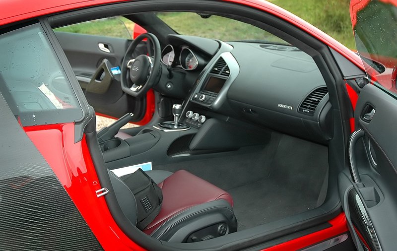 Nutno podotknout, že to byly úplně obyčejné klíčky, jaké se dávají k jakémukoliv jinému Audi. To mě ale vůbec nezajímá, když mačkám tlačítko a centrální zamykání na obou stranách vozu odjišťuje rozměrné bezrámové dveře. Tváří se, jako by měly vážit desítky kil. Ve skutečnosti jsou ale velmi lehké.