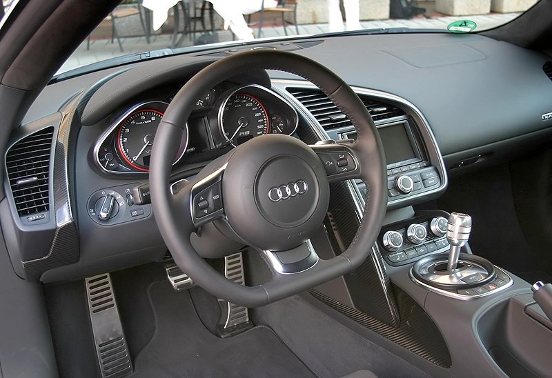 Právě trochu postarší automat R-Tronic mě docela rozladil. Je opravdu brutální a nemůžete od něj čekat žádné hladké přeřazování. Spíše vás pořádně kopne do zad, aby vzápětí nahodil další převodový stupeň. Meziplyny moc nezná při cestě nahoru ani dolů. Ale díky němu to při podřazování pořádně střílí do výfuků. Ano, a řadící páka také není nic moc. Ovládá se minimálně zmateně a je třeba si na ni chvíli zvykat. Co bych teď dal za pravověrný manuální šestikvalt, zvlášť když vím, s jakou nádhernou kulisou ho do Audi R8 dávají!
