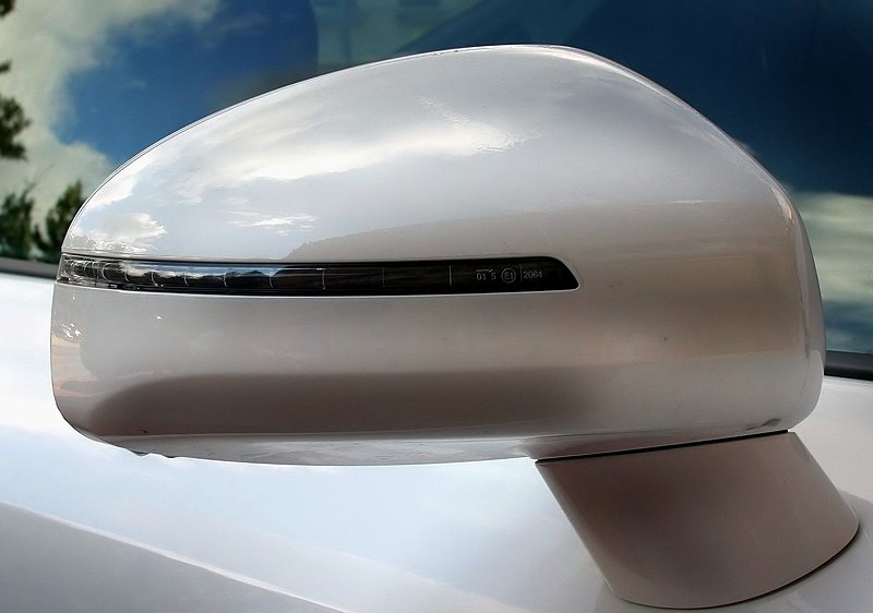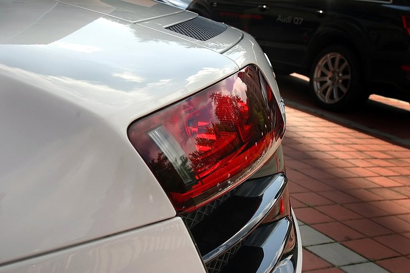 Dostal jsem klíčky od bílého kousku. Jak se liší od kupé? Nijak výrazně, tedy kromě látkové střechy a faktu, že zmizelo postranní zdobení, tak zvané sideblades. A uvnitř? Tam nic nepoznáte, tedy kromě tlačítka na sundání střechy. Ano, a za celou dobu jsem nedokázal najít páčku, kterou se otevírá motorový prostor.