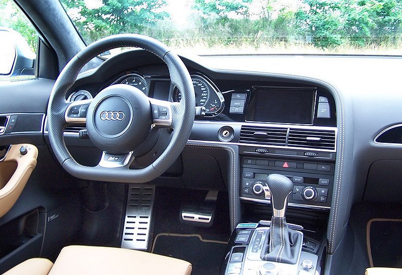 Uvnitř se odehrál podobný počet změn. Audi dodala sportovní volant se spodním ořezem, chromové pedály a bohatě tvarovaná sedadla se skvělým bočním vedením. Námi testovaný vůz měl potahy z hnědé kůže kombinované s černou na palubní desce a obšité červenou nití. Paráda!