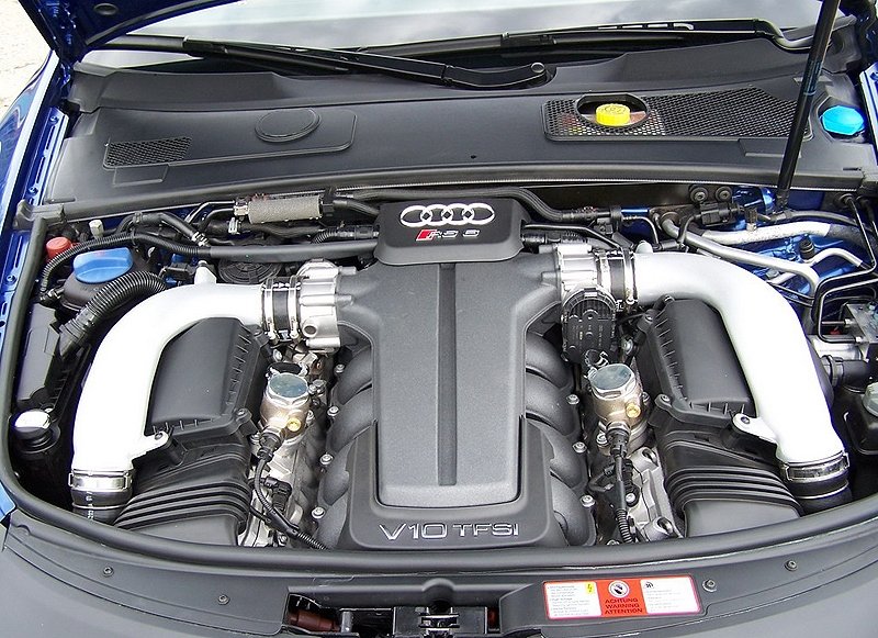 Už ze zapálení agregátu je jasné, že tohle nebude nic pro slečinky. Taky původně duněl pod kapotou Lamborghini Gallardo. Díky staženému okénku nás burácivý zvuk motoru hezky obemkne. Máme tu čest s nejmodernějším desetiválcem TFSI o objemu 5,0 litrů. Aby to nebylo málo, přeplňuje ho dvojice turbodmychadel. Výkonově to znamená 426 kW, tedy celých 580 koní. Přitom v Gallardu má „jen“ 520 koní.