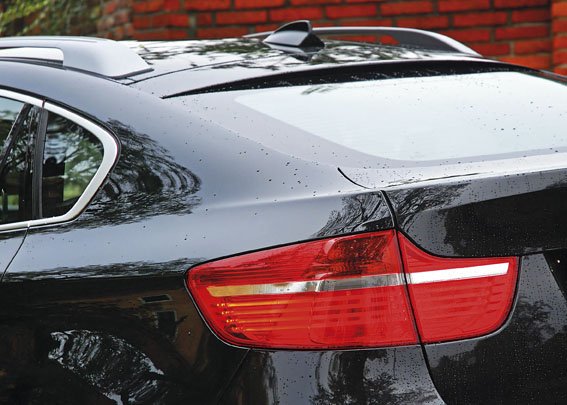 Jedno rozhodně ix-šestce upřít nelze. I když stojí na místě, vypadá, jako by se už už chystalo vystartovat a skočit po krku všem menším, slabším, roztomilejším autům (a že výjimek je jen málo). Výraz odfrkávajícího nosorožce ještě podtrhují mohutné hliníkové prahy, jejich drobnou nevýhodou je, že se o ně prakticky nelze neušpinit při vystupování. O tom, jaká motorizace tento konkrétní vůz pohání, žádný štítek neinformuje. Obří „špalky“ obuté na devatenáctipalcových litých kolech a dvojice koncovek výfuku solidních rozměrů však hovoří jasnou řečí. S tímhle divočákem není radno si zahrávat. Snad jen černý lak je až zbytečně fádní, BMW však nabízí bohatou paletu příplatkových barev včetně možnosti absolutního přizpůsobení v programu Individual.