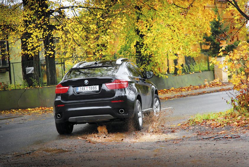 Pokud přitom máte obavu o stav vlastního pozadí, rozptýlí ji skutečnost, že i když je X6 přece jen stavěná na kvalitnější (západo)evropské či americké silnice, poradí si také s nedostatky těch domácích. Pravda, s příčnými prahy si až tak skvěle nerozumí, ovšem menší nerovnosti poctivě polyká i na devatenáctipalcových discích. Pokud však přijde rychlý sled příčných hrbolů, přece jen je znát jistá kolébavost.